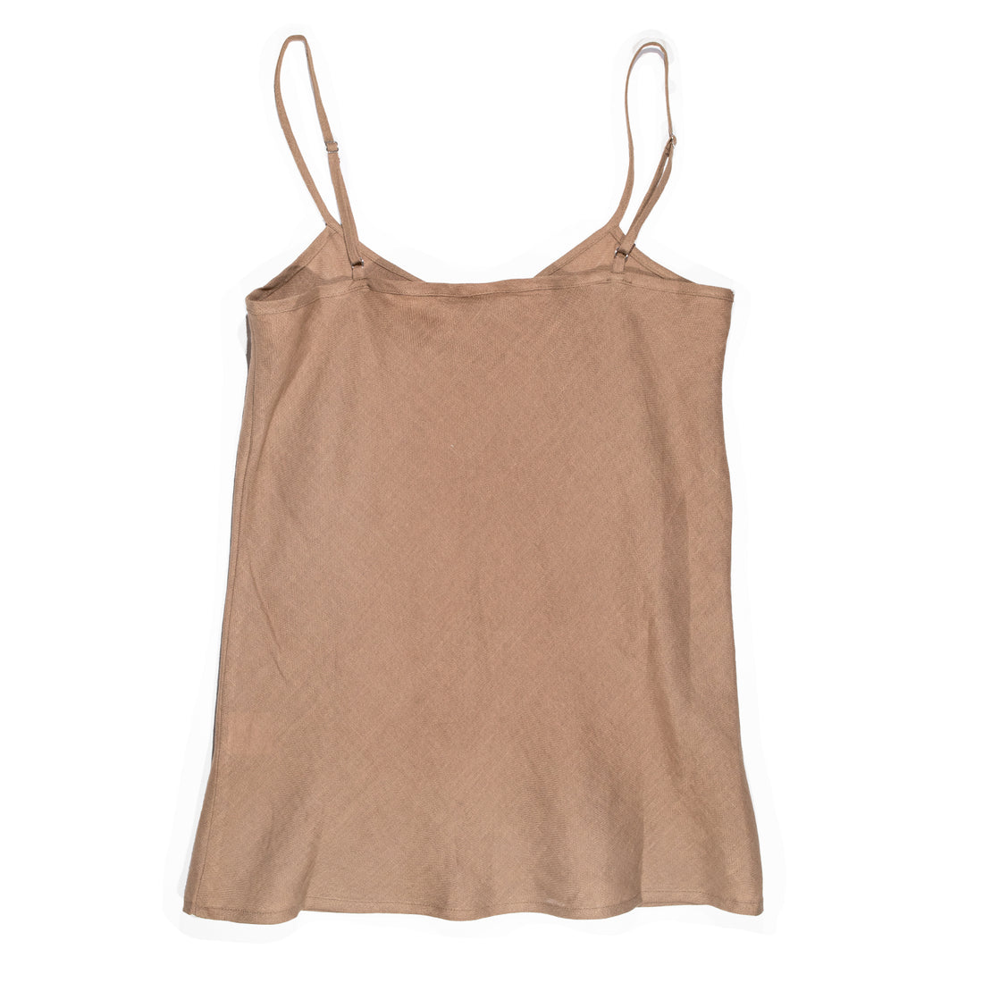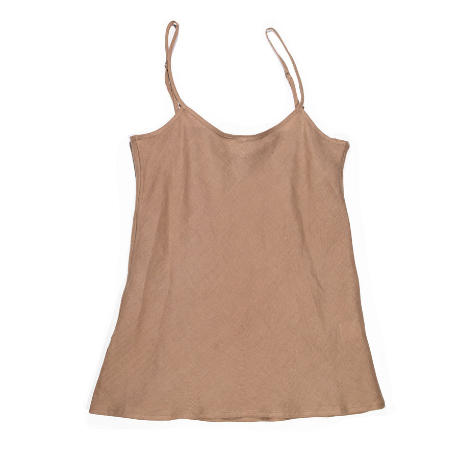 The Dydine Top is a semi-sheer linen top with thin adjustable straps.