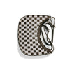 The Mini Sling is a handwoven carré check leather with an adjustable shoulder strap to wear it short or long. Features a narrow leather paneled bottom and top zipper.
