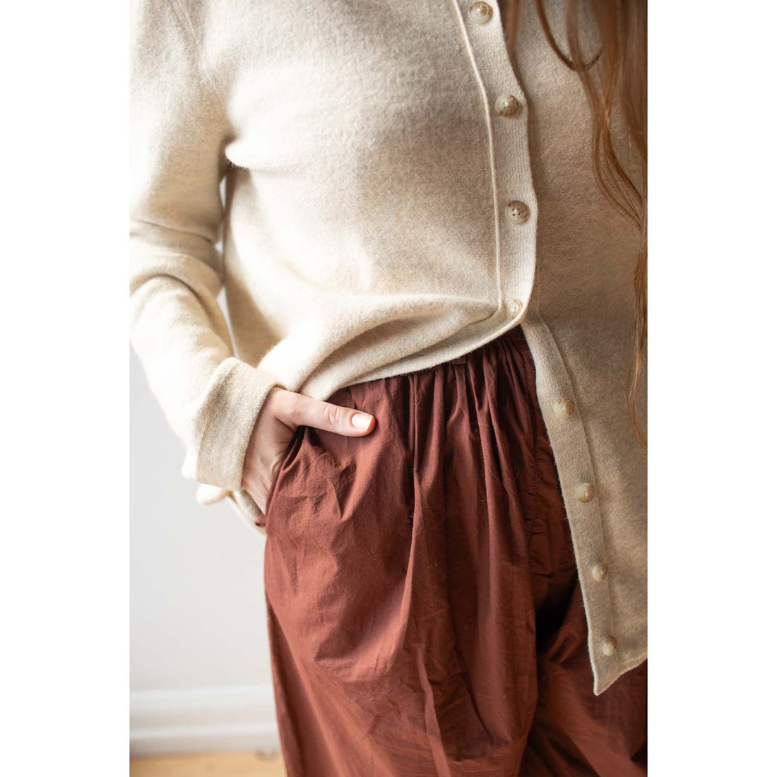 A new style for Caron Callahan, the Brady trouser features gathers along the waistband and a curved voluminous leg that tapers at the hem.