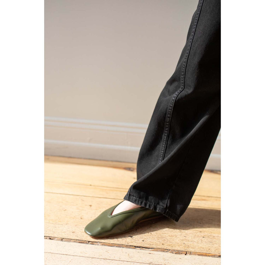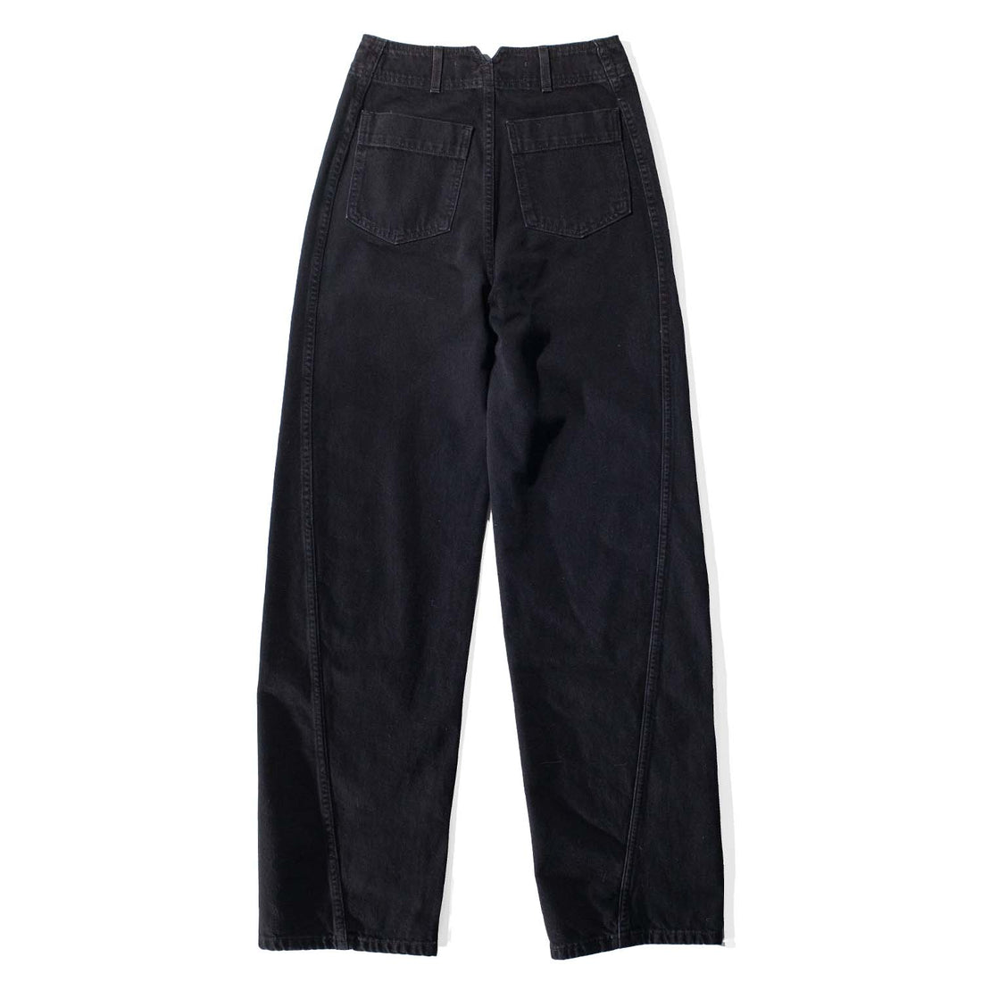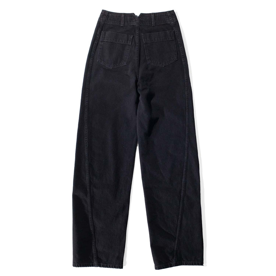 The Meridian Jean is a high-rise jean with a long barrel-leg silhouette.
