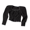 The Mabel Top is country-western iinspired silhouette with a square embroidered neckline, slight puff sleeve, and front-button placket.