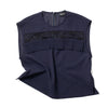 The Fuery Top is a sleeveless blouse with a clean, boxy silhouette and softly structured shoulders. Designed with a sheer lace inset across the chest, finished with a fine pleated trim for subtle dimension, and a concealed back zipper for a smooth finish. Cut from lightweight gossamer with a fluid drape.