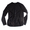 The Cotton Checkered Crewneck Shirt is a long-sleeve blouse with a band collar and tonal buttons. The style features an irregular bleached print throughout, giving each garment a uniquely distressed, worn-in look.