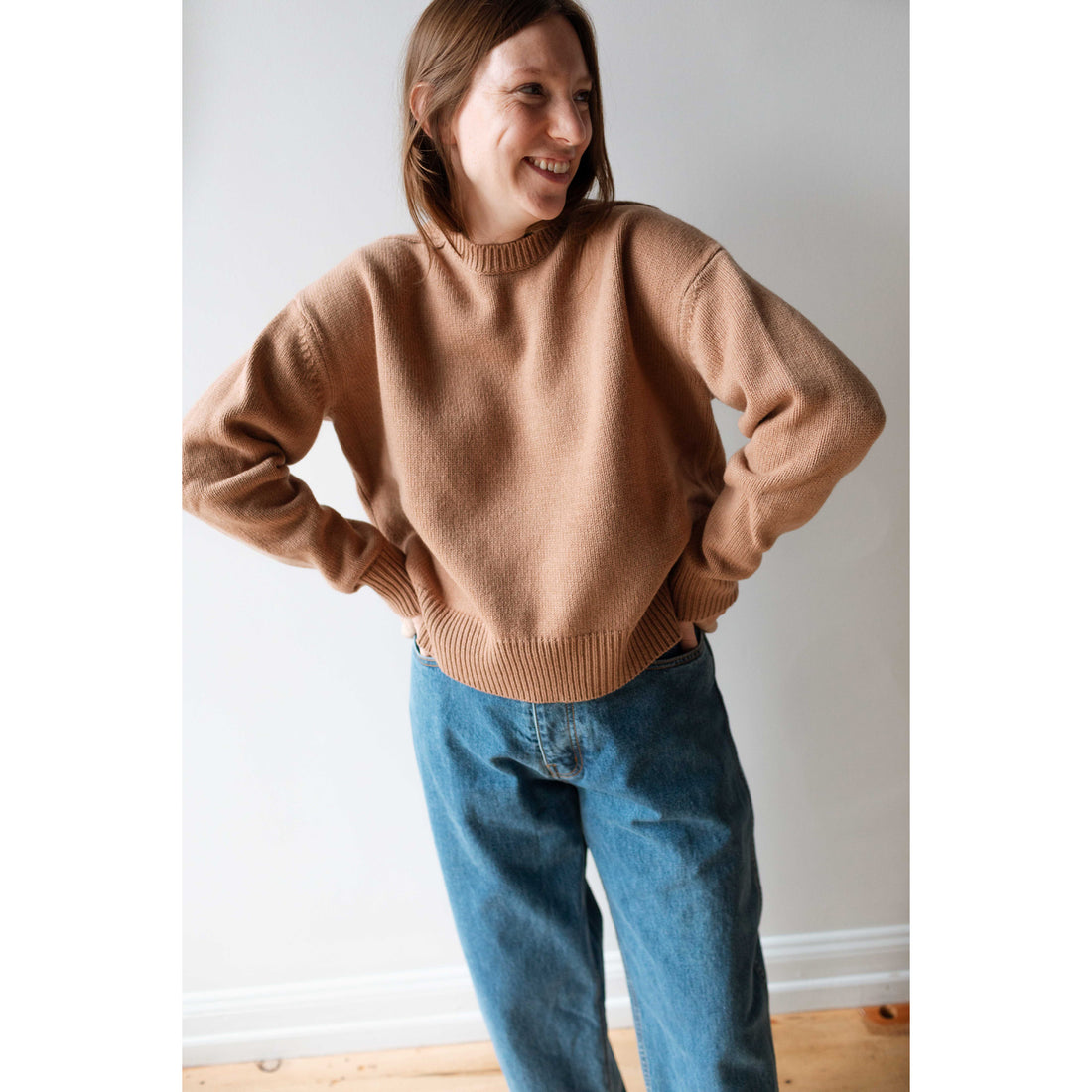 The Lago is an oversized boxy crewneck sweater made from 100% English lambswool.