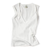 The Dewi Tank is a deep v-neck tank with a scooped-out armhole, crafted from medium-weight organic cotton.