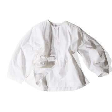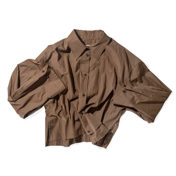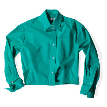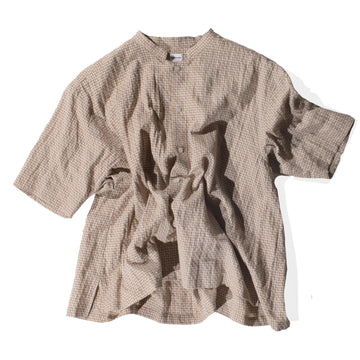 Evam Eva Cotton No Collar Shirt in Winter Leaf