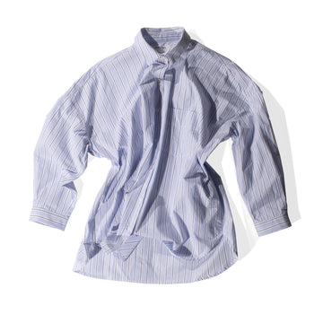 Kasmaria Oversized Shirt with Ruffle Neck and Tie in Blue Windowpane Check