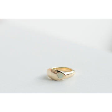 Designer Kate Jones makes modern heirloom jewelry using recycled metals, reclaimed diamonds, and domestically sourced inlay materials when possible. Her work balances personal connection and functionality.