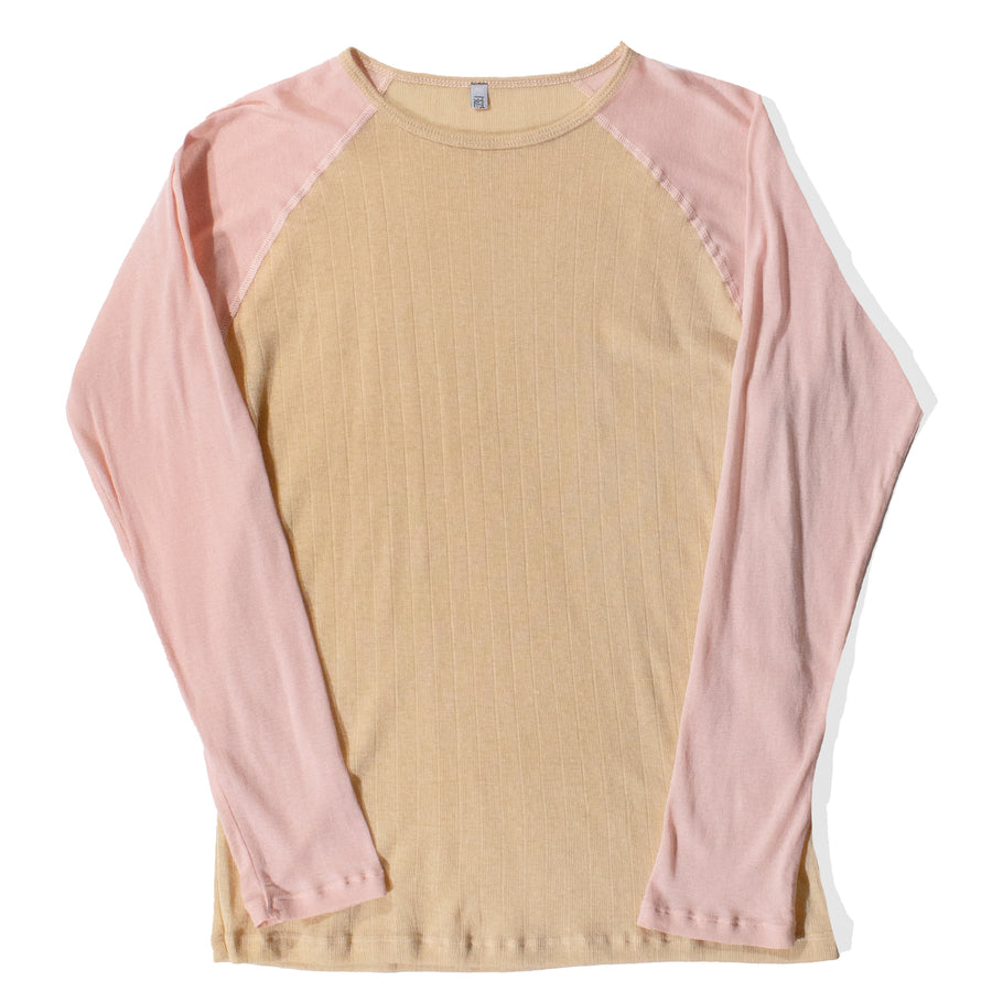 Baserange Gene Long Sleeve Tee in Hen Yellow/Buio Pink
