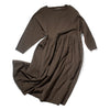 The Tradi Dress is a relaxed maxi silhouette with a square neckline, dolman sleeves, and shirring for a voluminous bottom. Cut in cotton corduroy.
