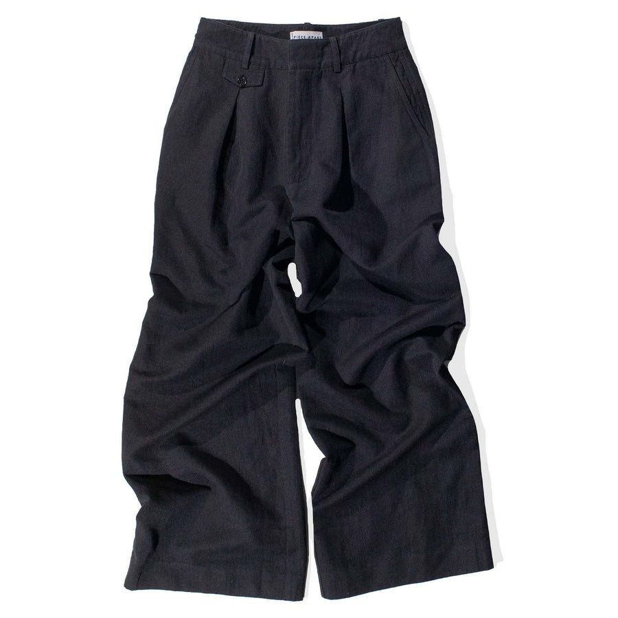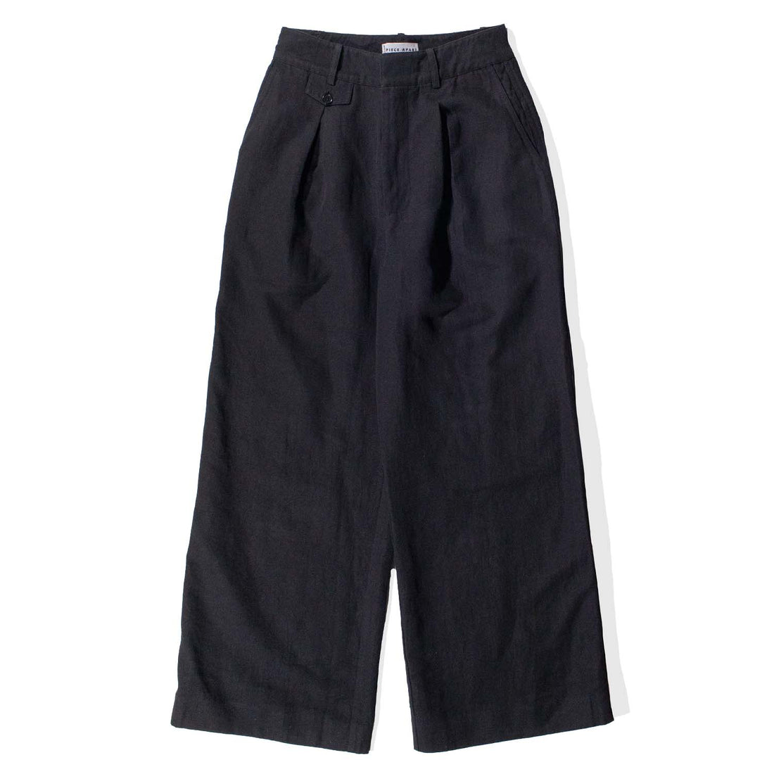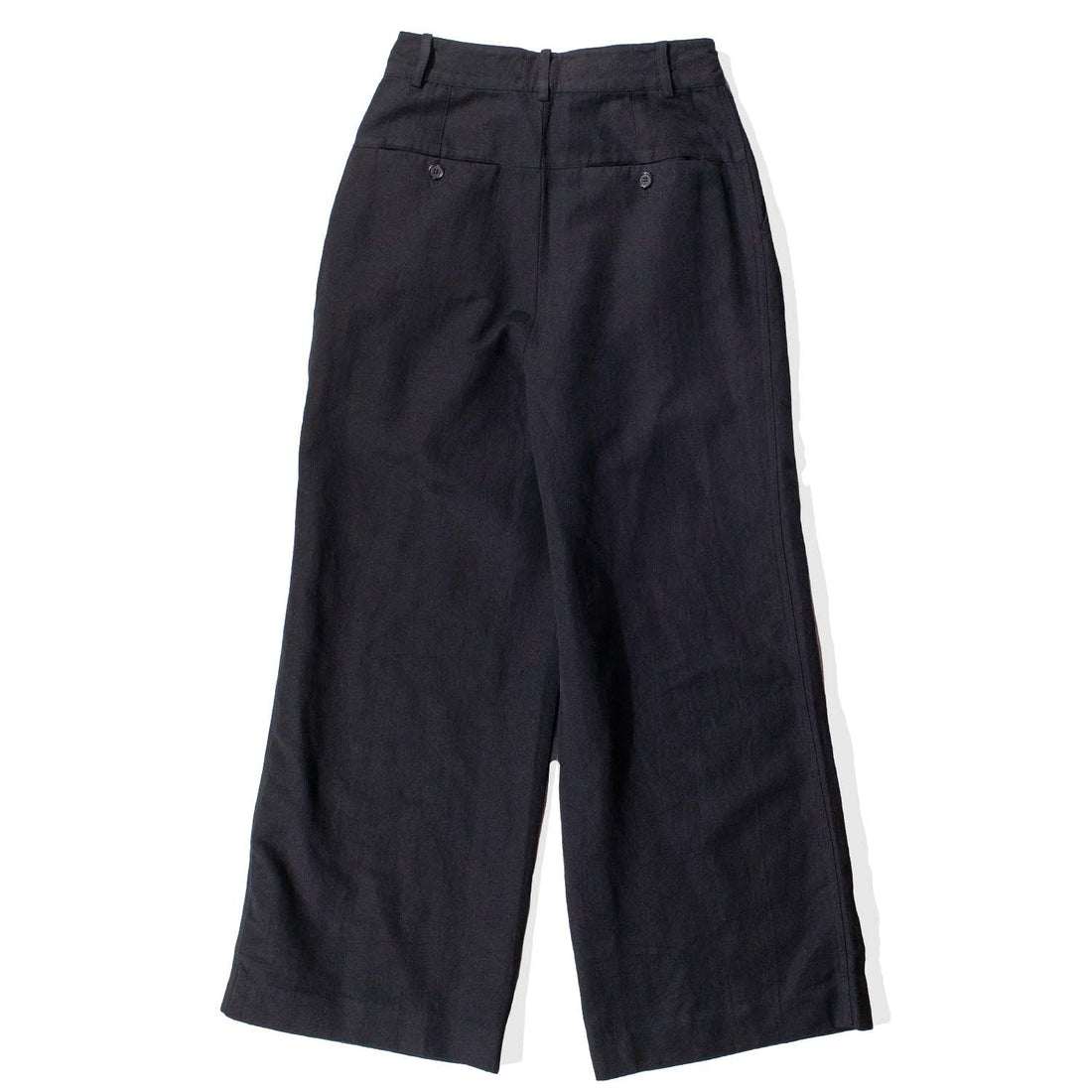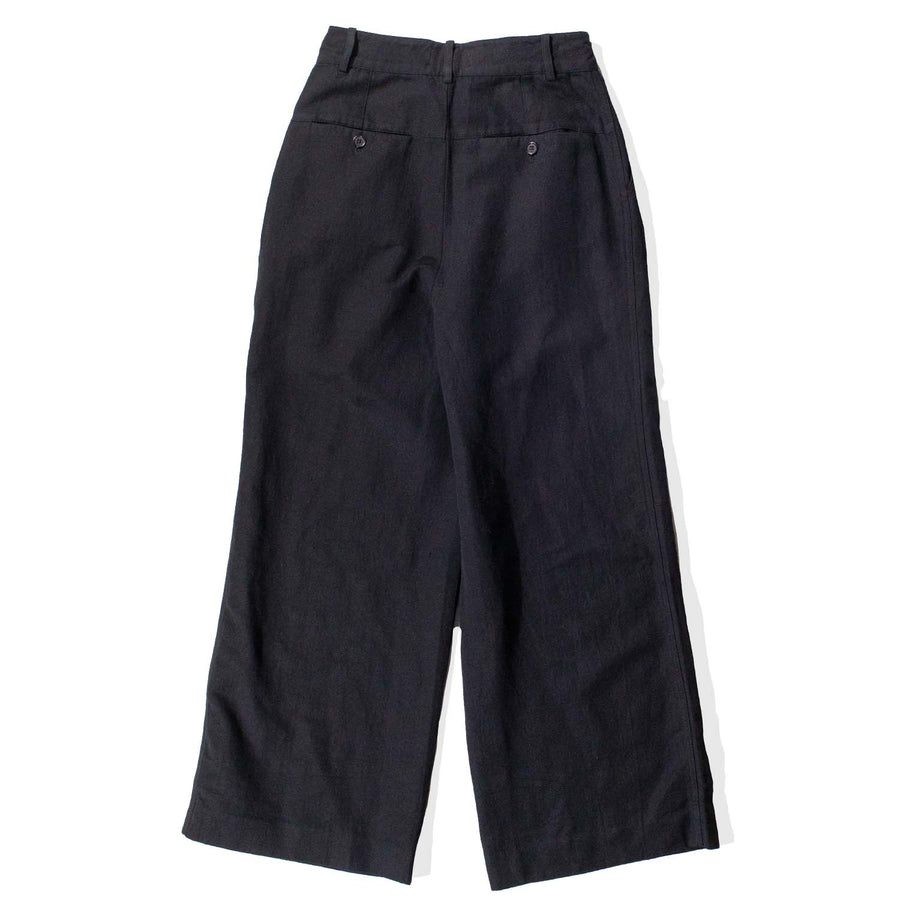 The Cara is a cropped wide-leg trouser with front pleats, cut this season in a soft linen/cotton blend.