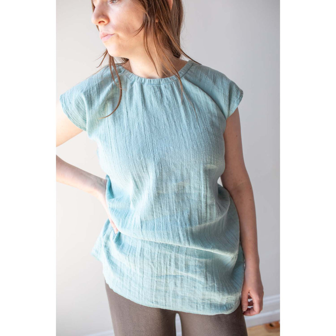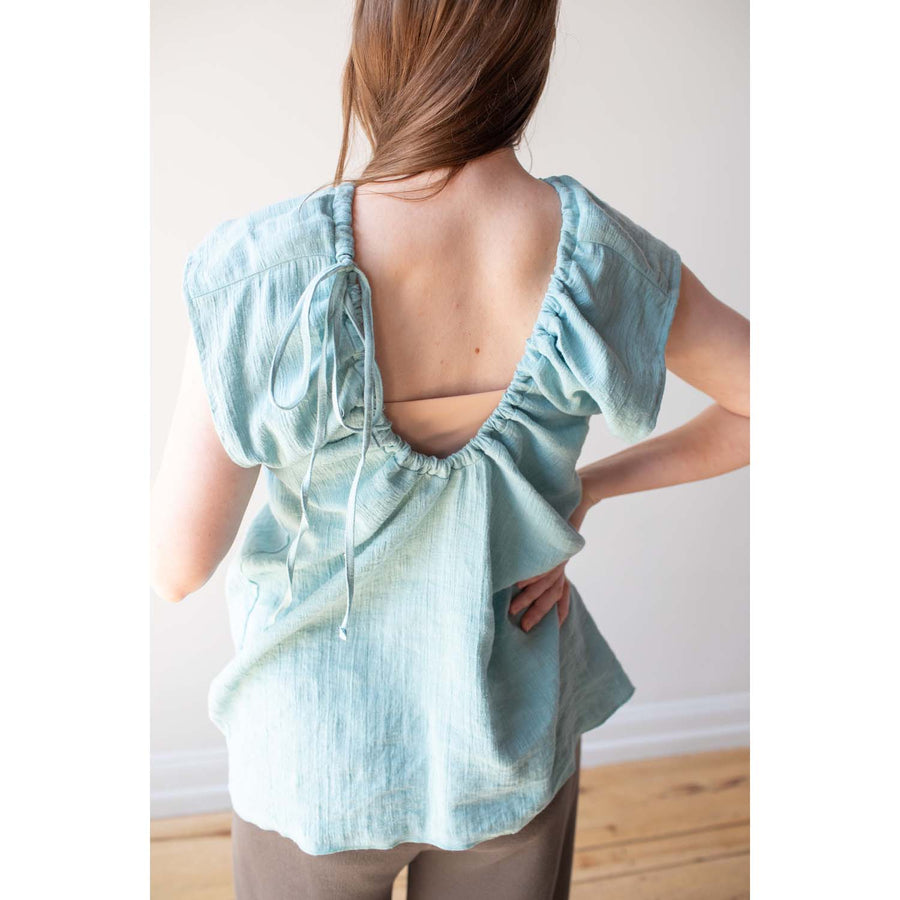 The Max Top is a crinkle linen tunic top that can be worn both ways (front & back) with an adjustable drawstring at the neckline.