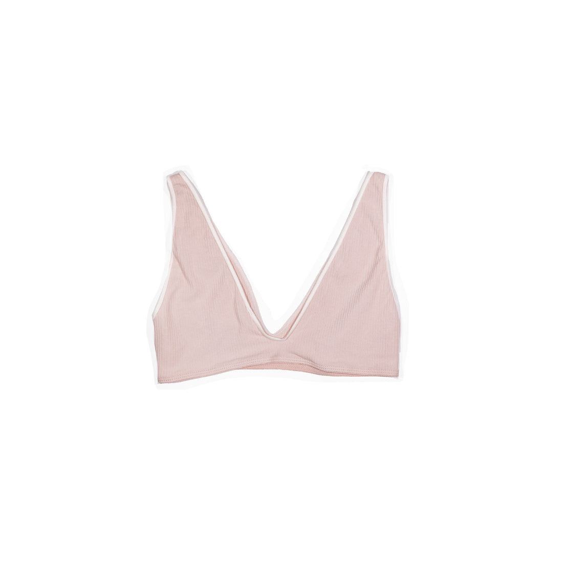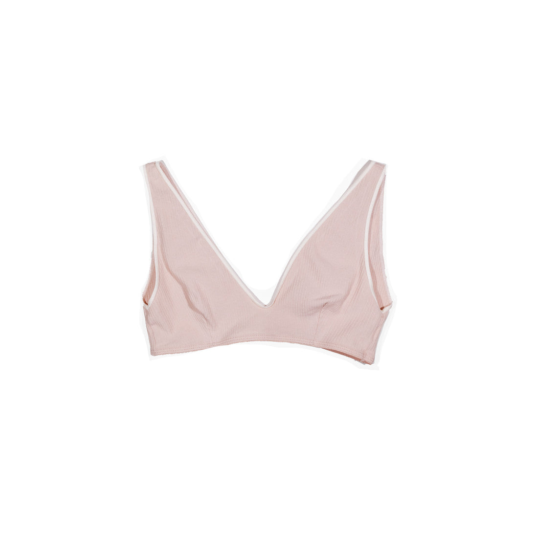 The Pam is a fine cotton-rib bra with contrast overlock seams and darts at the chest.