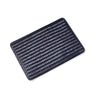 A leather laptop sleeve. Features handwoven carré leather on one side and smooth leather on the other side.