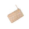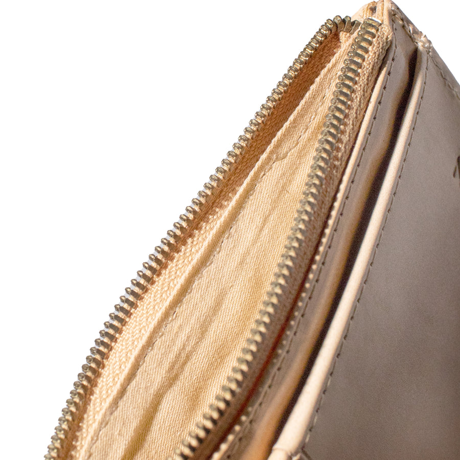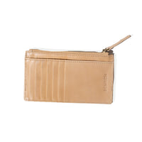 A slim, minimalist card case in handwoven leather. Features seven card slots, a zip pouch, and an internal pocket.