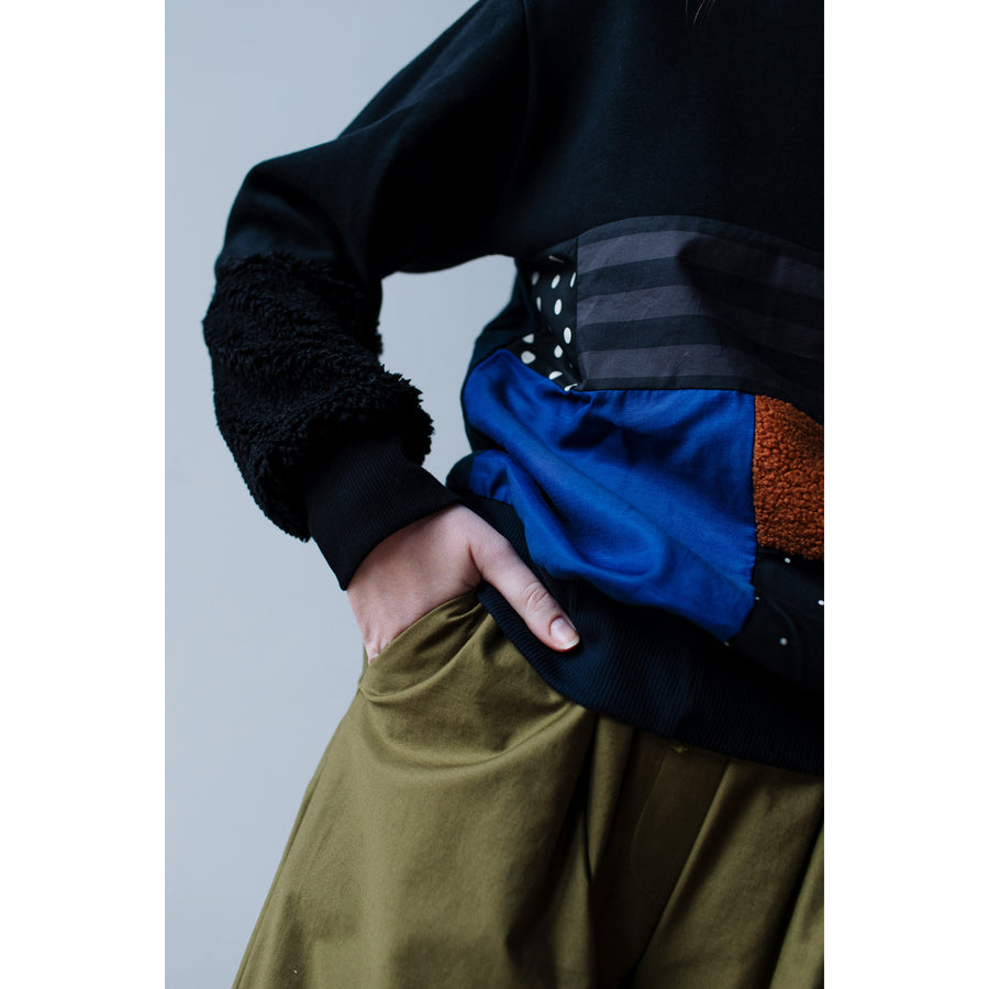 The Lono Sweatshirt is made from vintage and recycled sweatshirt fabrics, gingham shirts and sherpa fleece, as well as productions leftovers and deadstock materials.