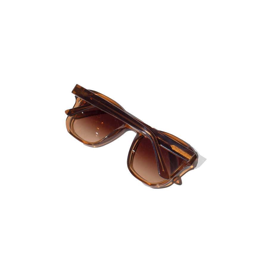 The BQE offers a gentle curve to a modern box shape. They're a slightly larger fit than Masaki's 001s, with an earthy brown frame and rich double gradient brown lens.