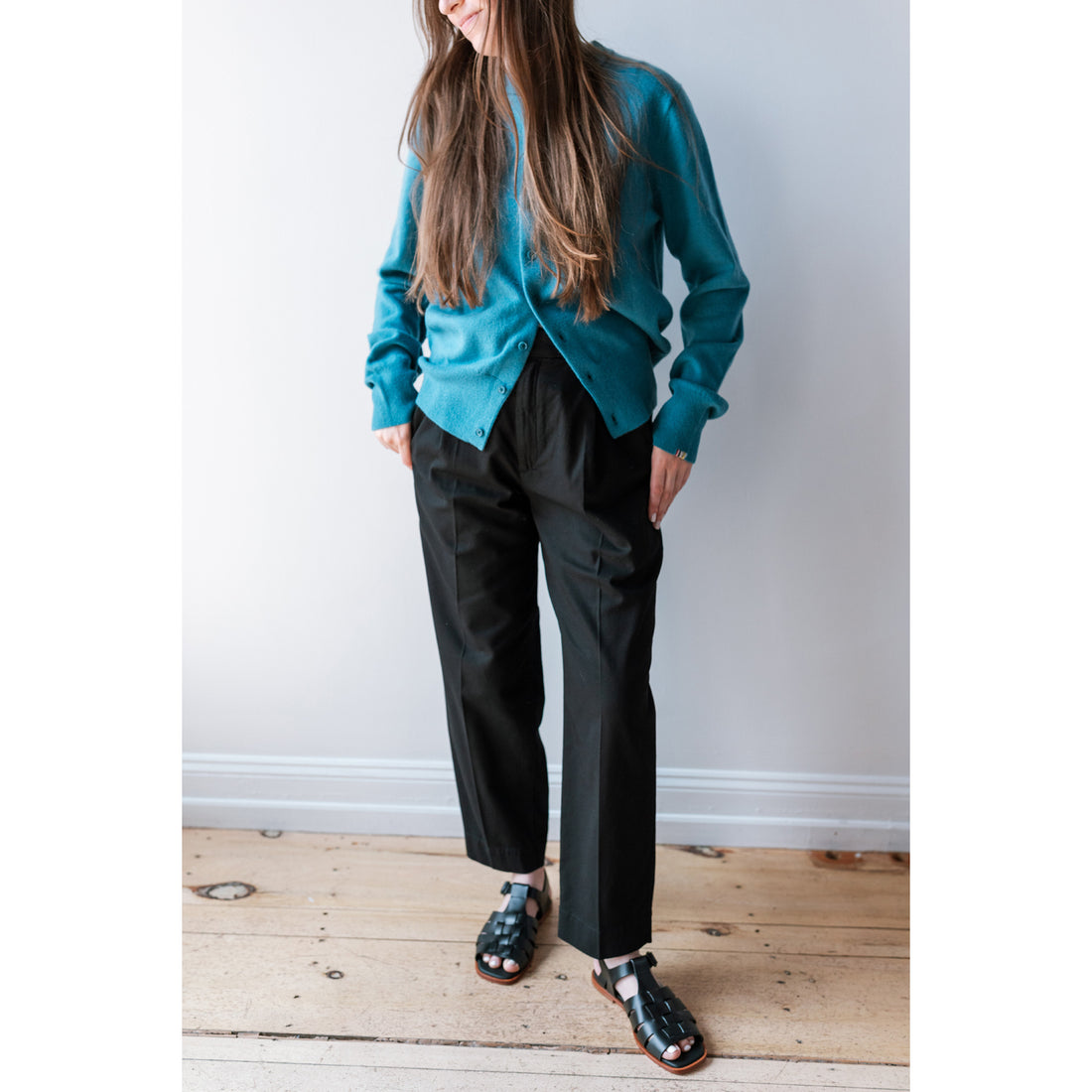 The Hope Alta Trousers are a cropped tailored pant with a high-rise waist, single-pleated front, and tapered leg.