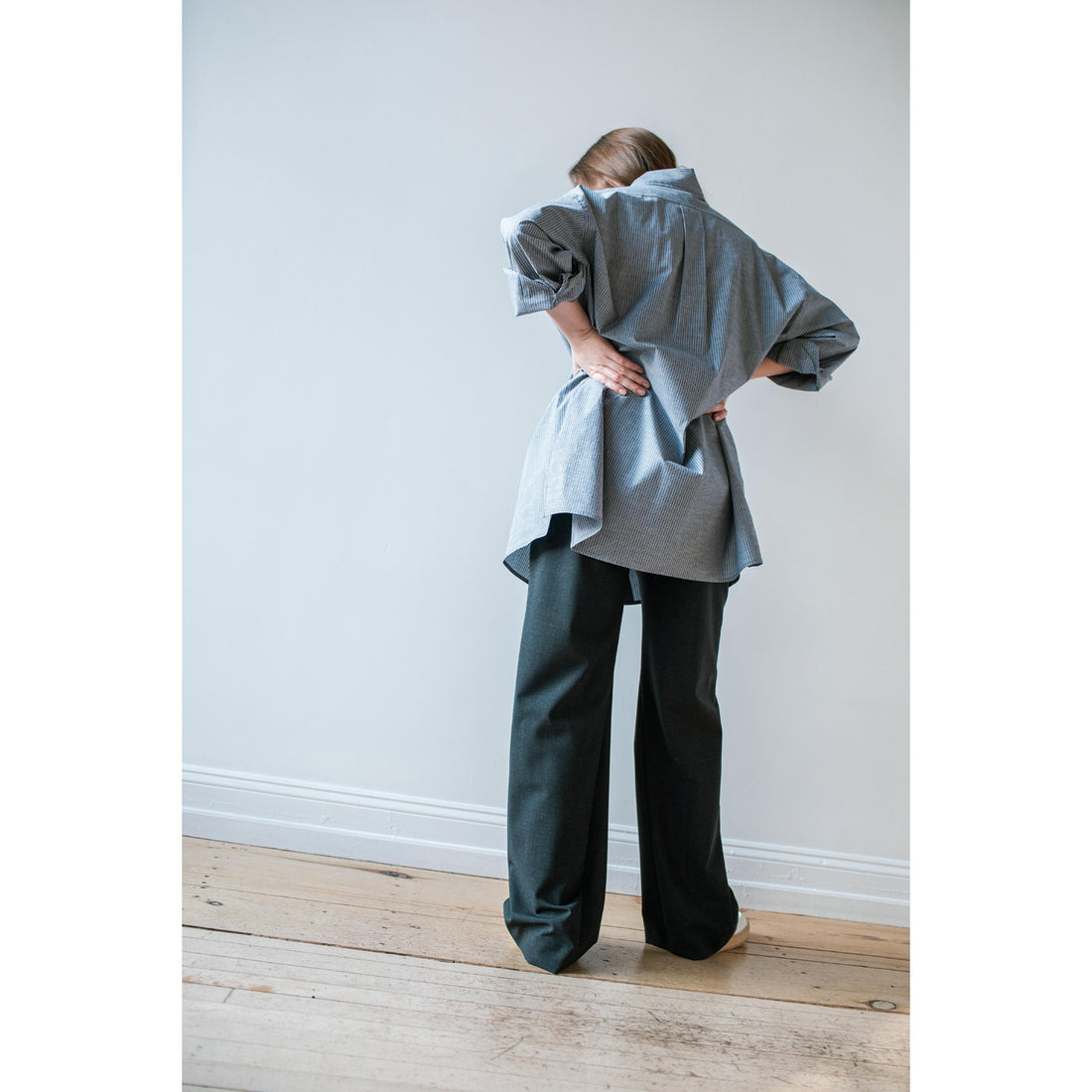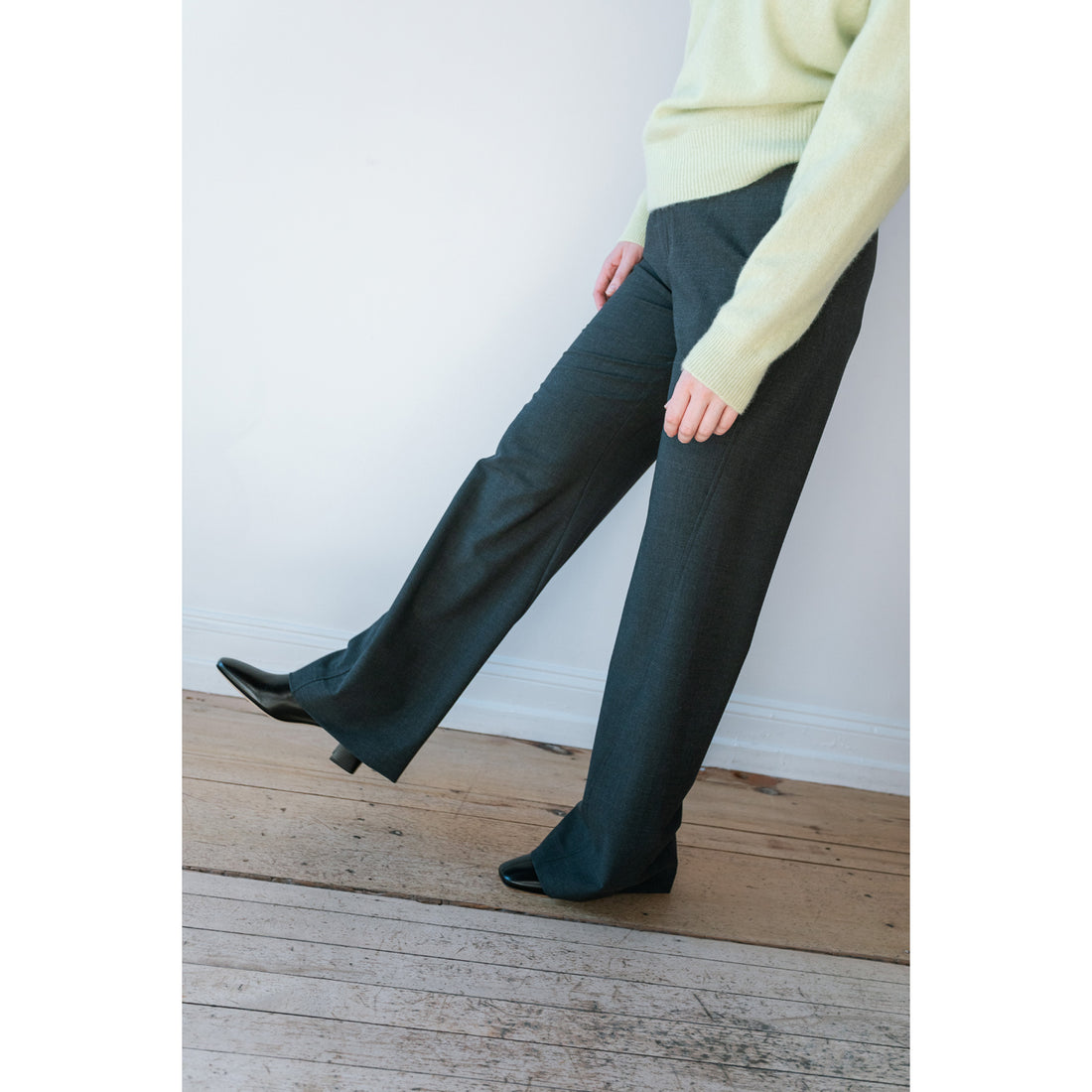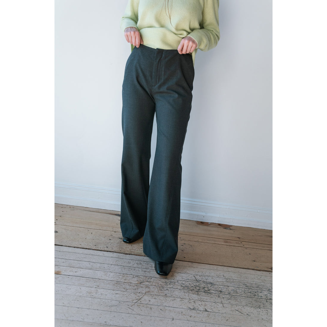 The Skew Trousers are low-rise pants with a slight flare through the leg.