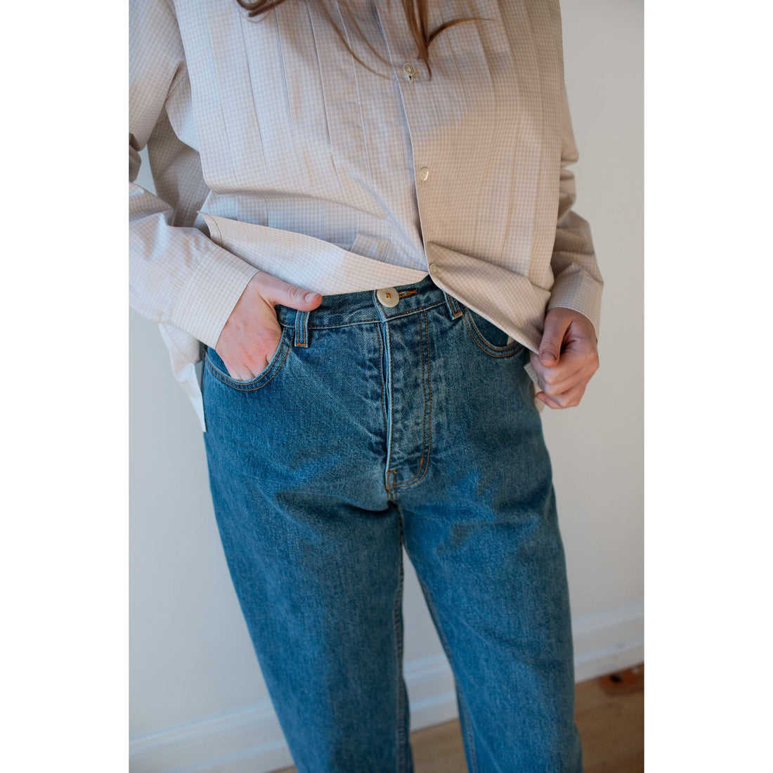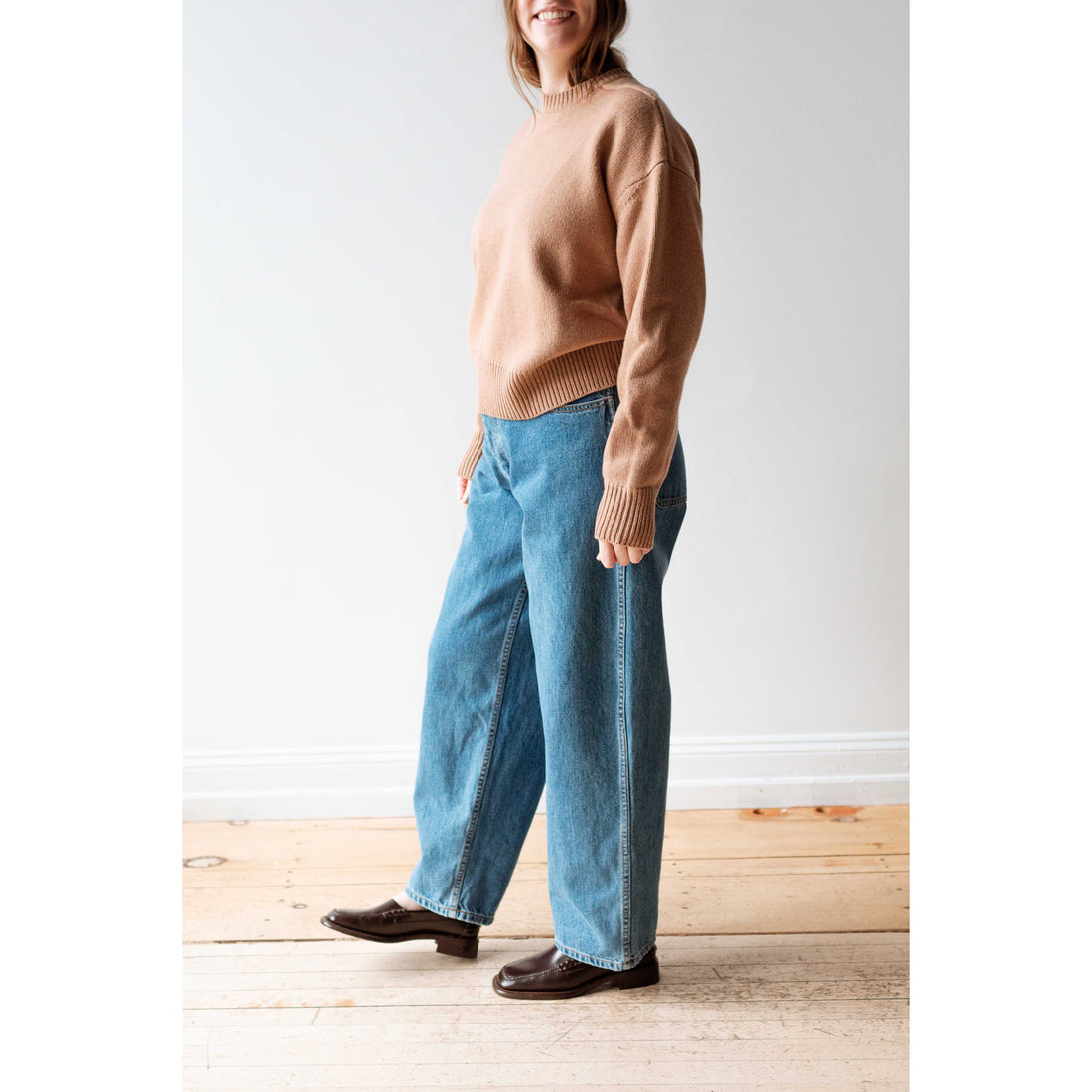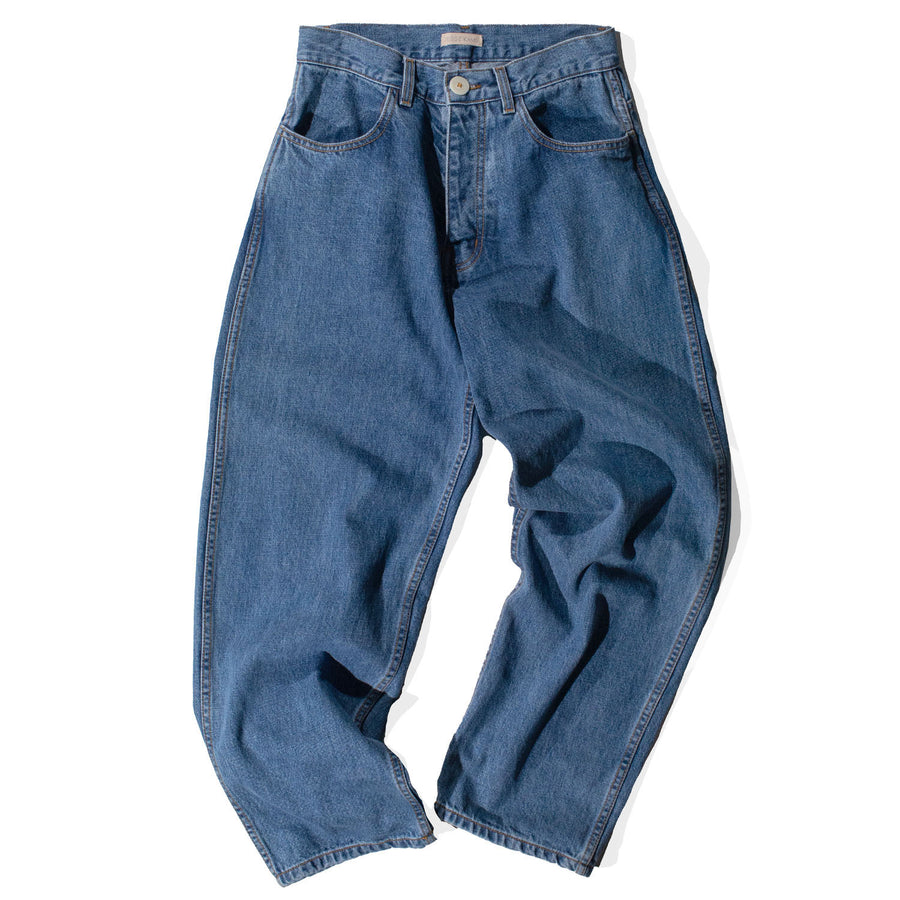 One of Jesse Kamm's newest styles, the California Wide Pant is a unisex pant with a relaxed straight leg, cut in stonewashed 13oz Japanese denim.