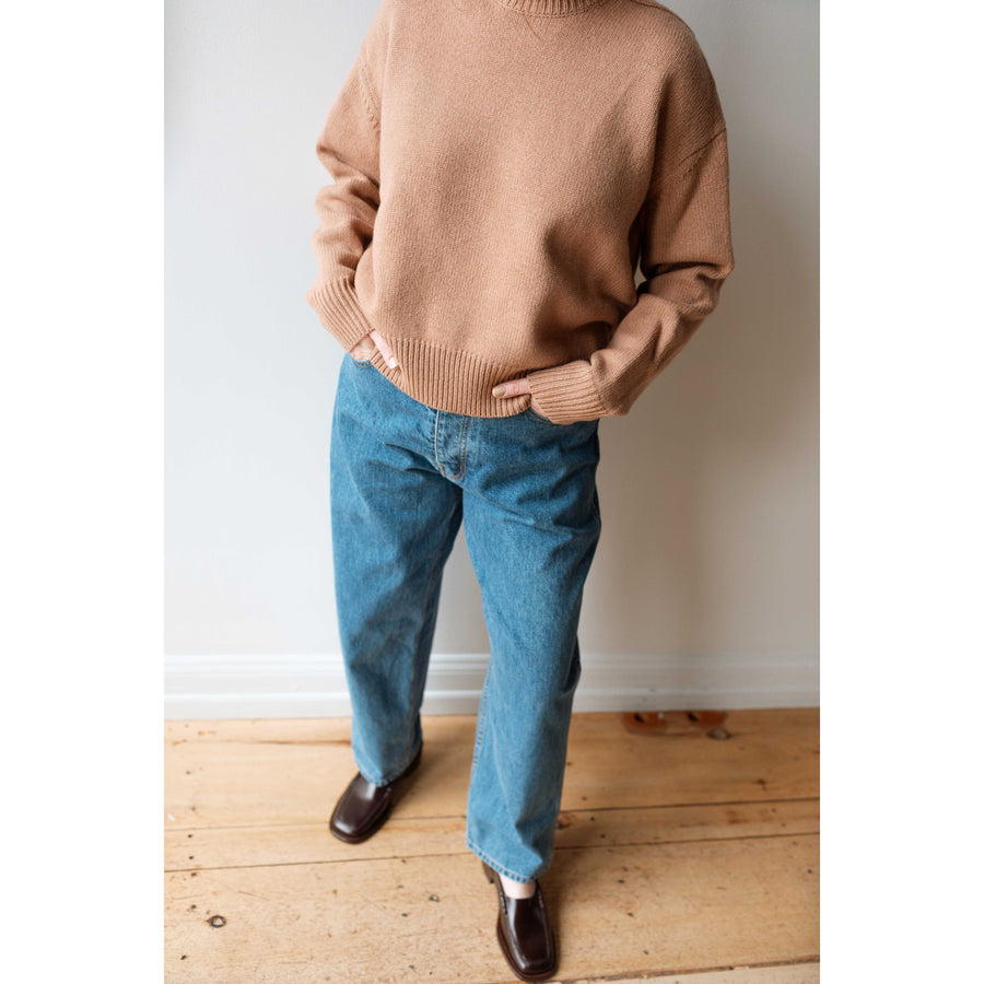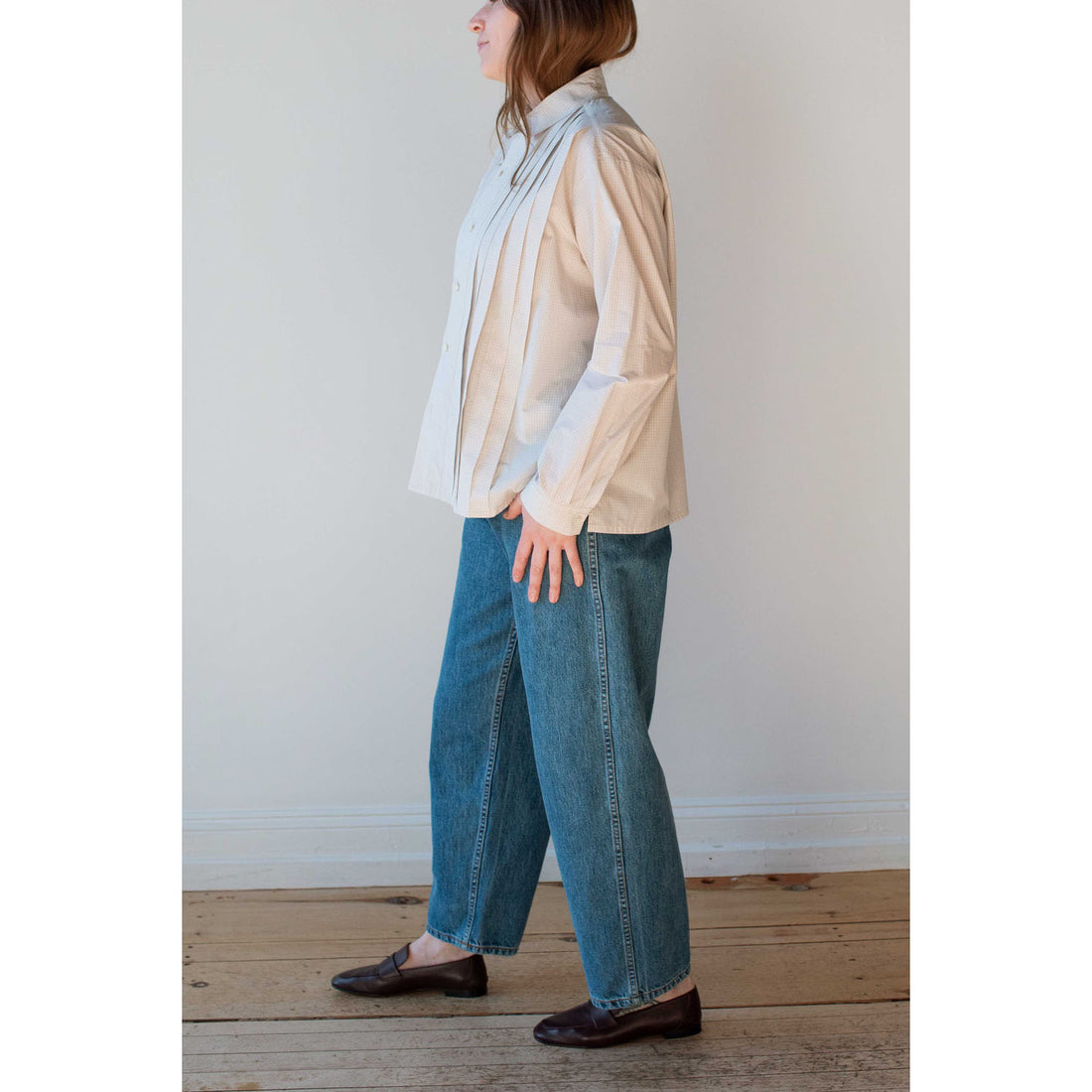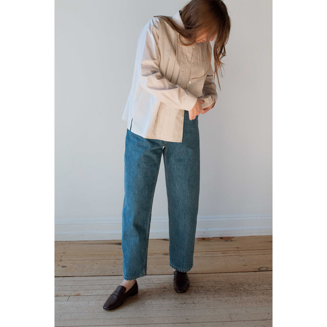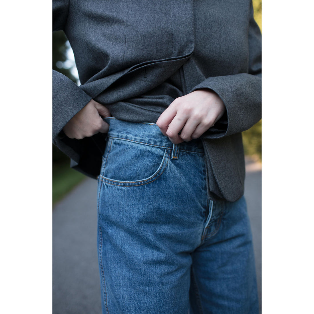 One of Jesse Kamm's newest styles, the California Wide Pant is a unisex pant with a relaxed straight leg, cut in stonewashed 13oz Japanese denim.