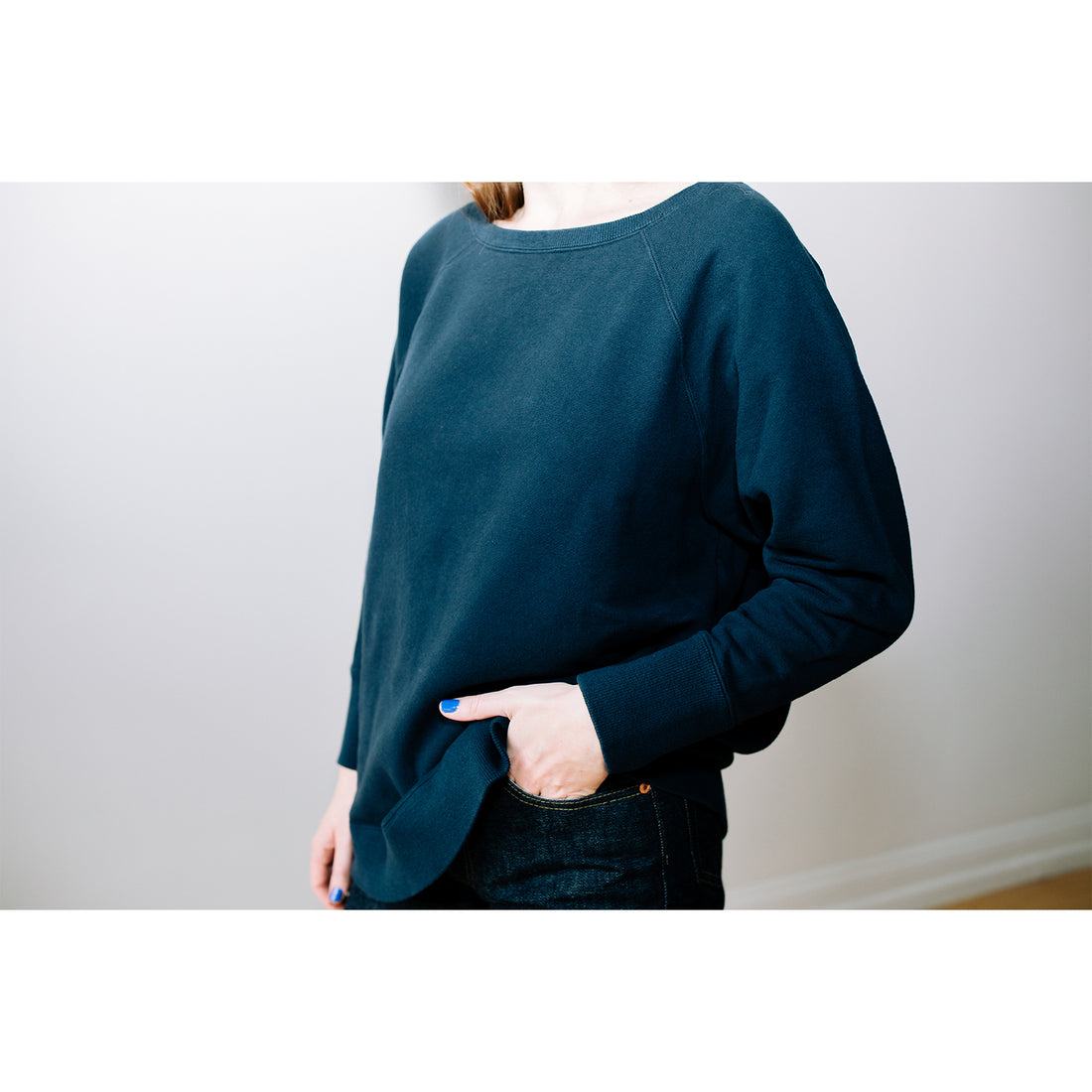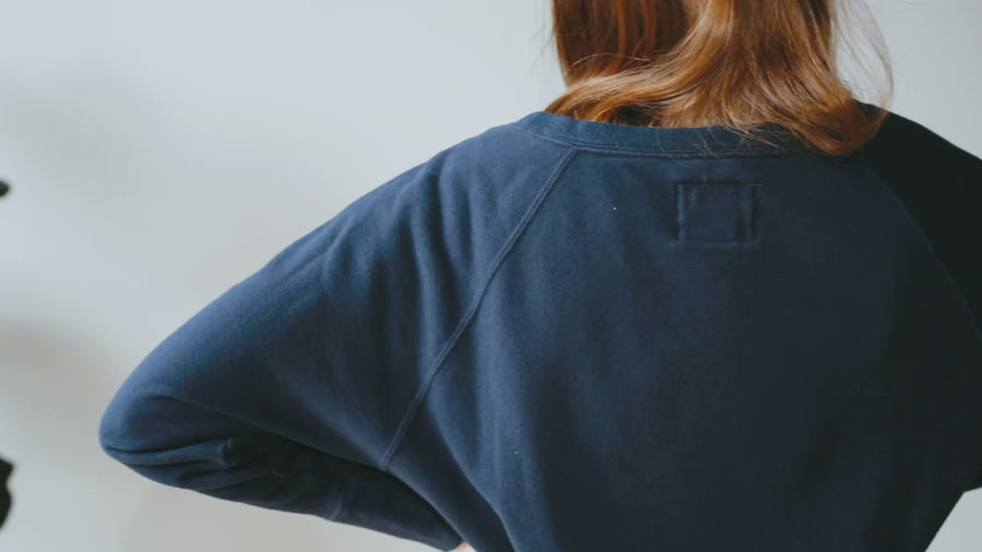 Long, straight, relaxed fit body. Slim sleeves with extended ribbed cuffs. Raglan sleeves. Proportions perfect for long layering. 100% Japanese terry loop cotton. Produced vertically by our partners in Osaka, Japan in small batches, eliminating excess transport & waste.