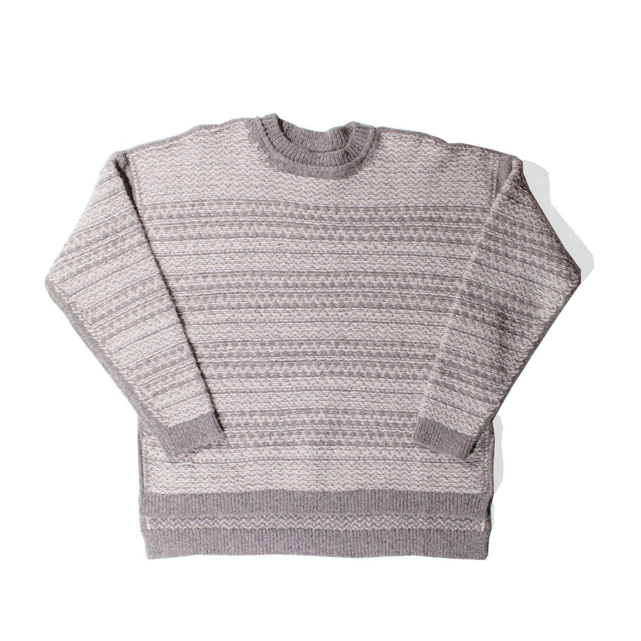 The Jacquard Crewneck features a reversed patterned stitch and rolled rib detail.