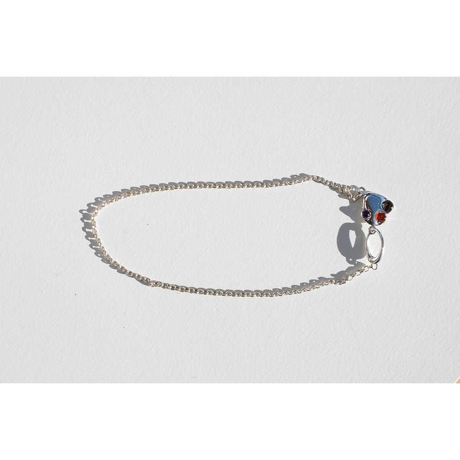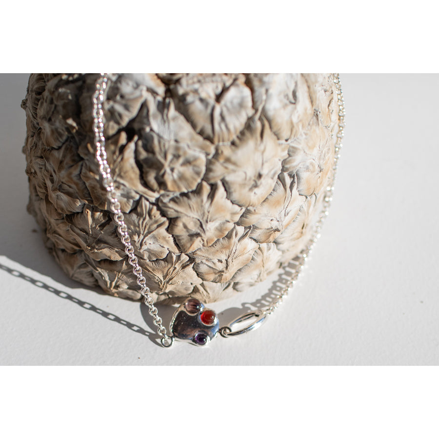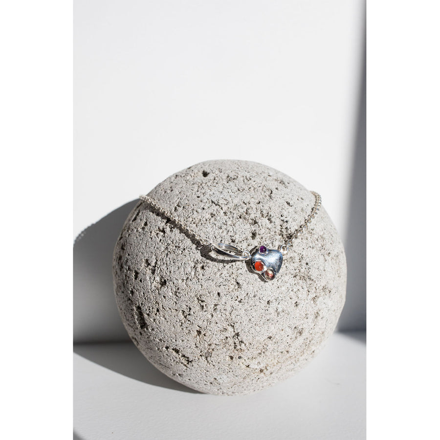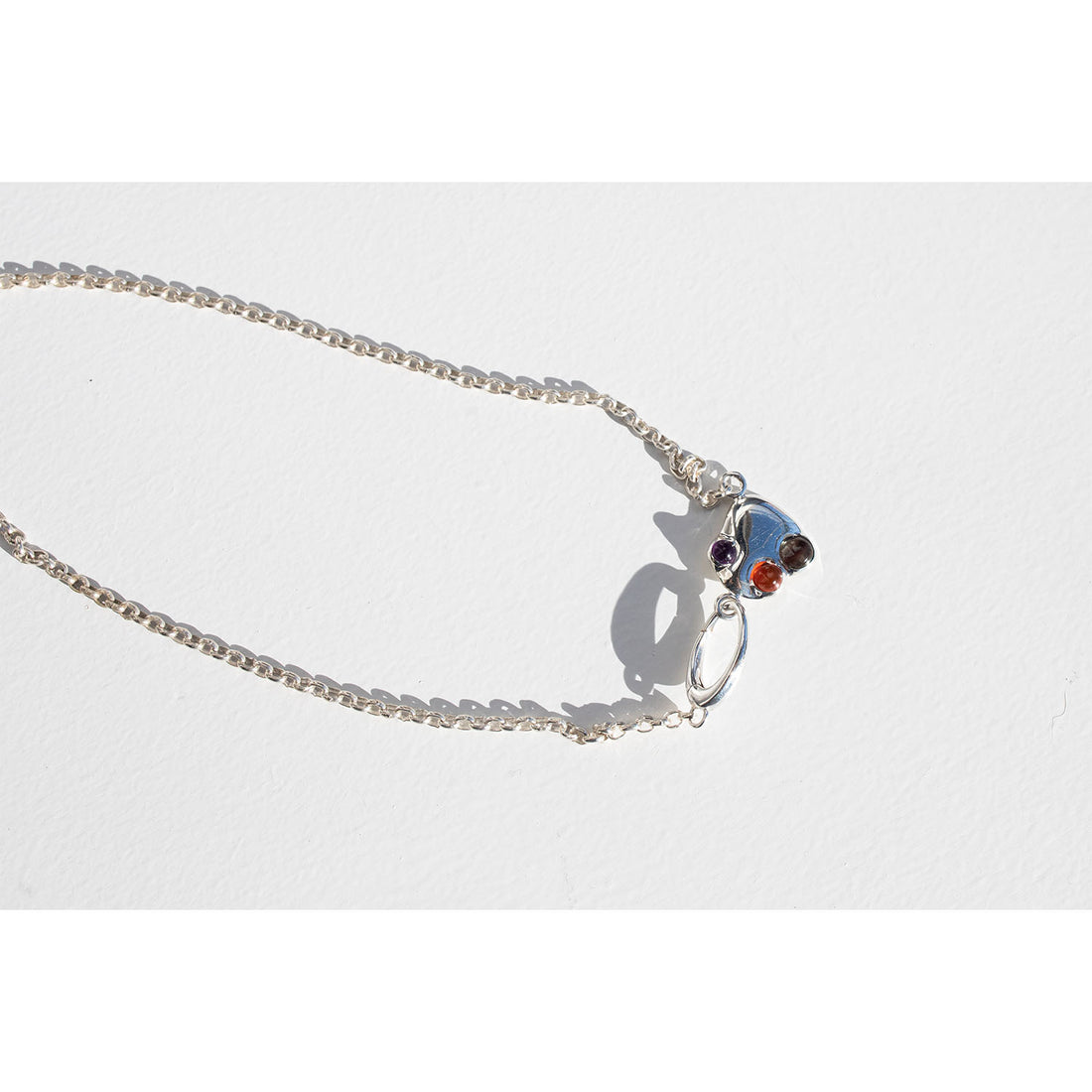 - sterling silver with striped sunstone, amethyst, and carnelian