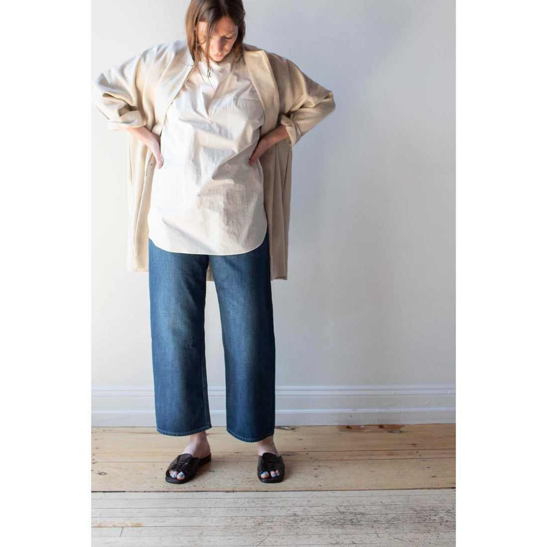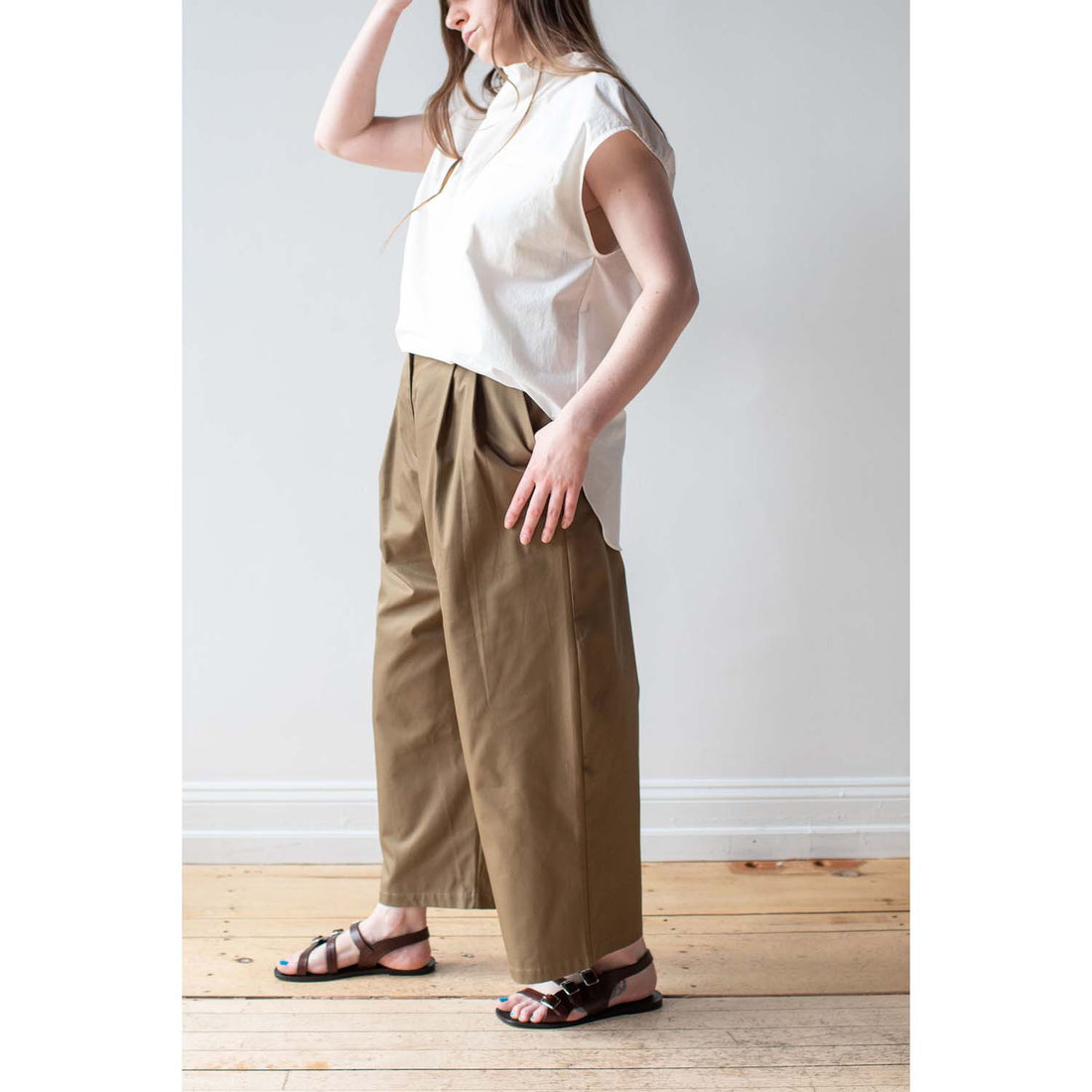 The Anorak Top is an oversized sleeveless cotton top with a funnel neckline detail.