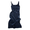 The Square Neck Darted Dress is an A-line silhouette in crinkled fabric with concealed zipper at the side seam.