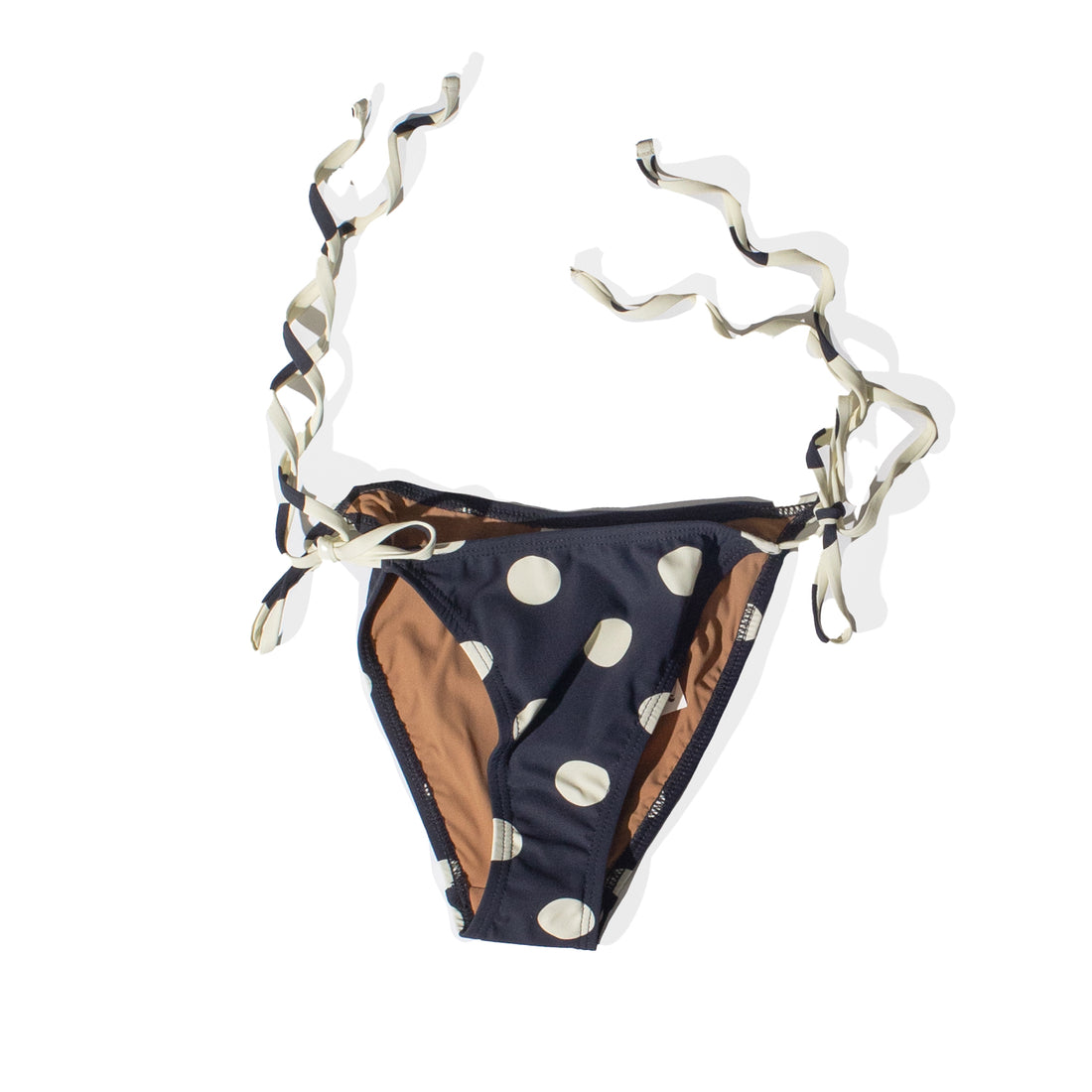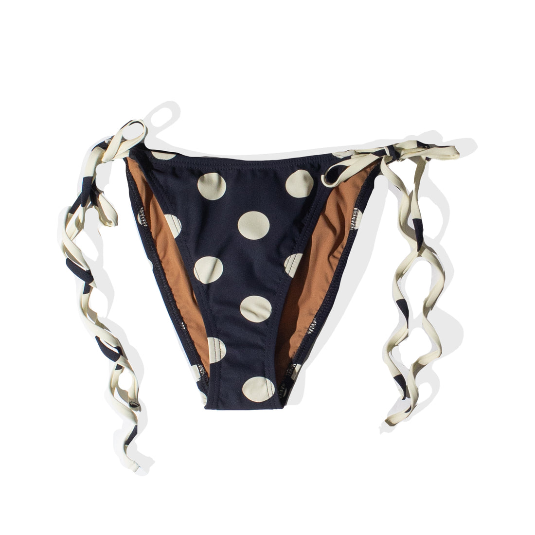 The String Bottom is a classic and flattering bottom, offered here in a polka dot print.