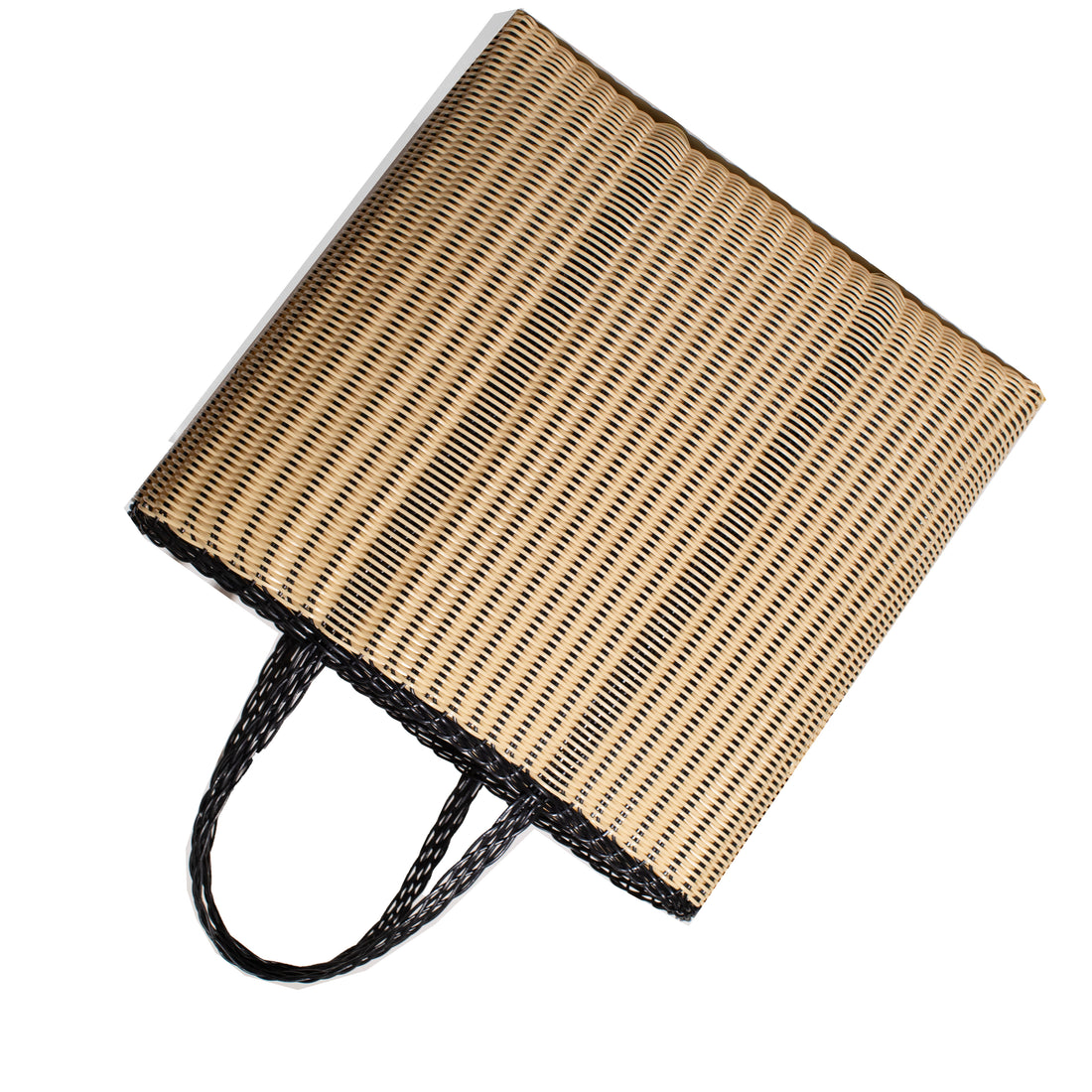 The Large Edge Basket Bag is a top-handle tote bag that features a double weave pattern. Light, minimal, and extremely durable, the bag is made with post-consumer plastic handwoven in Guatemala using traditional techniques.