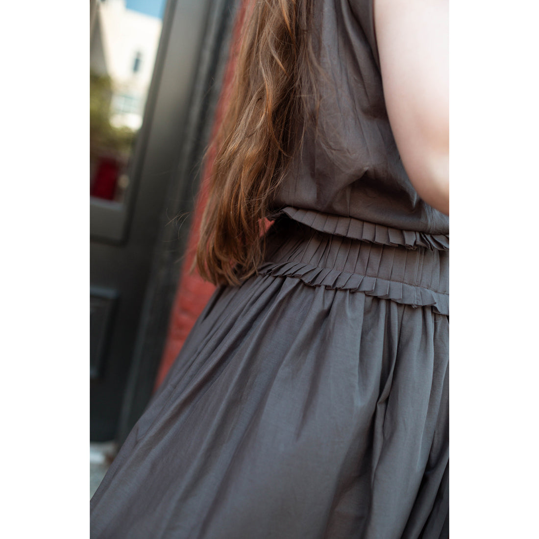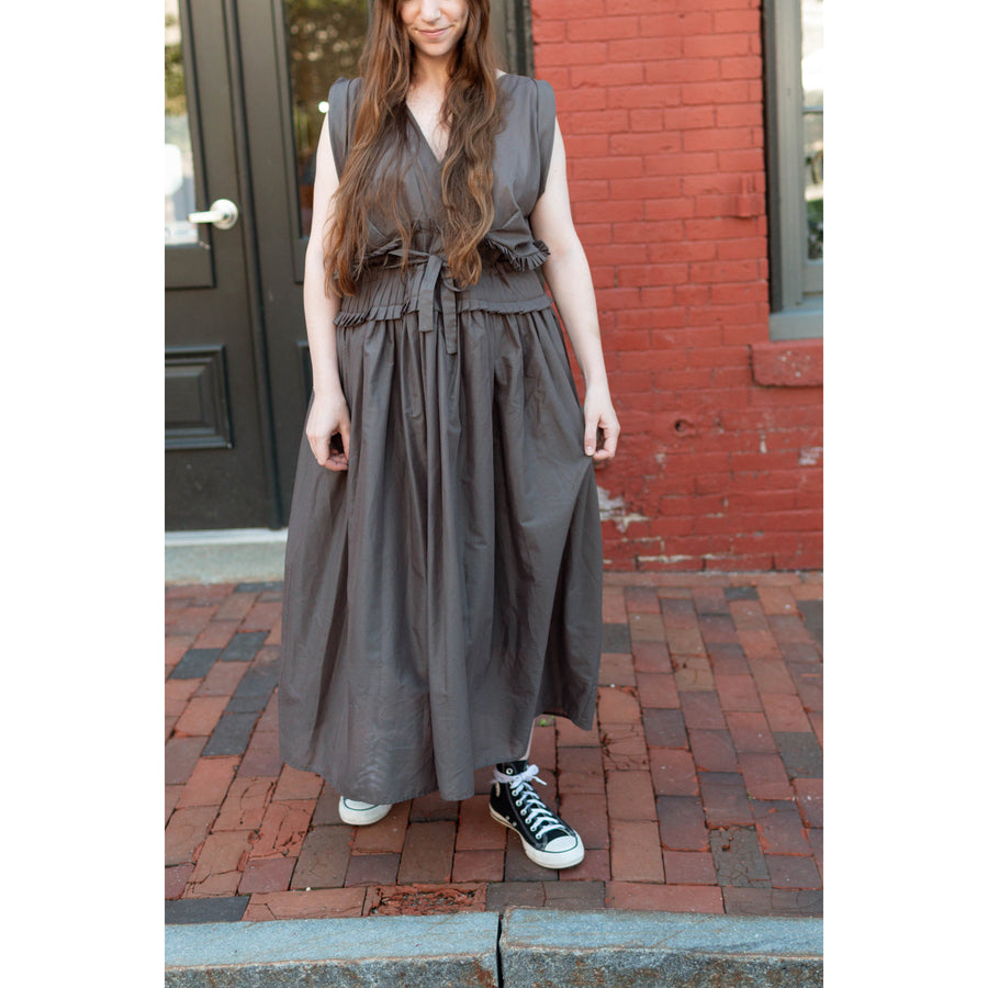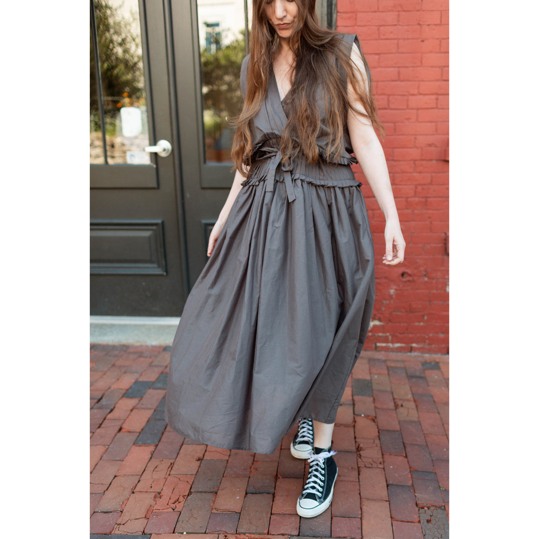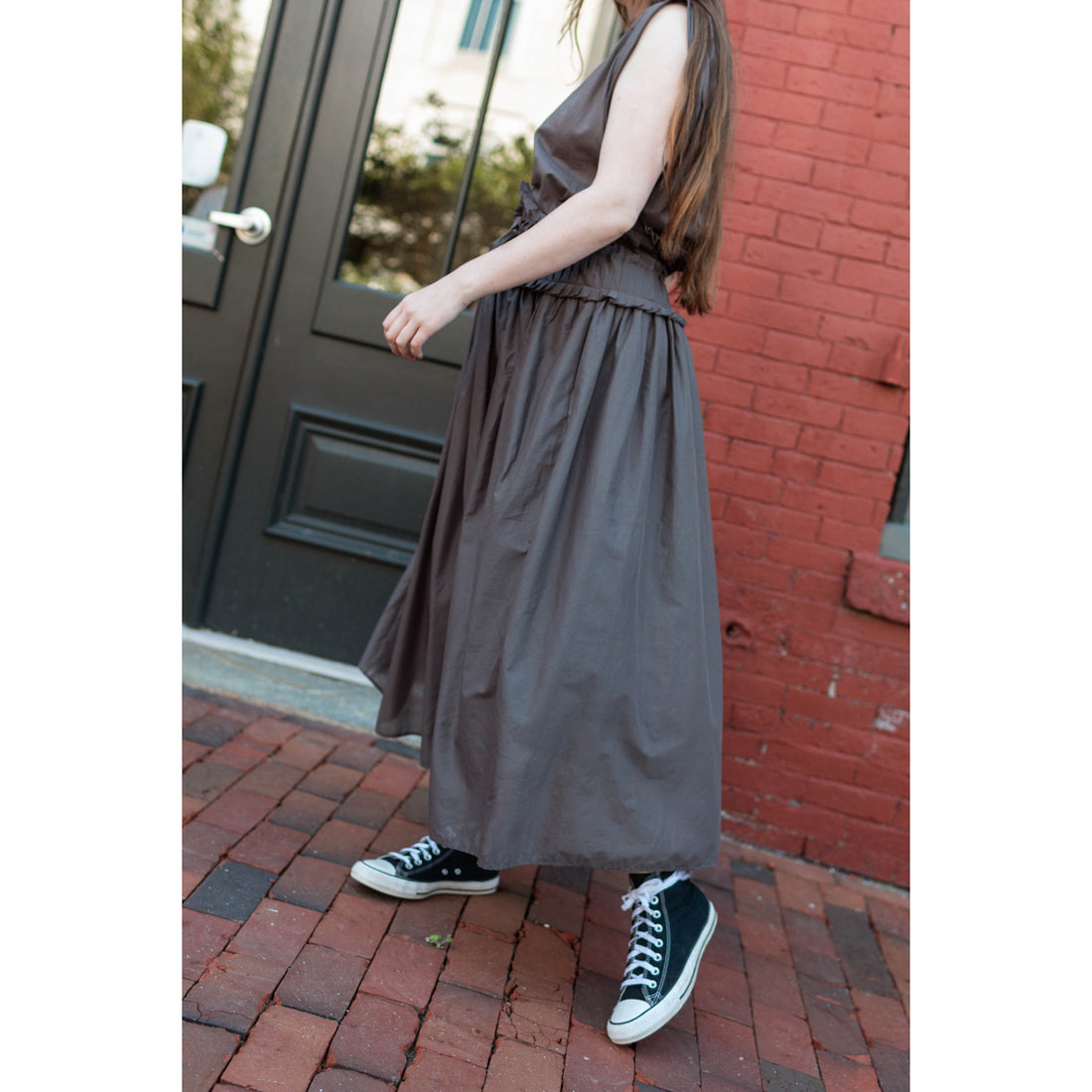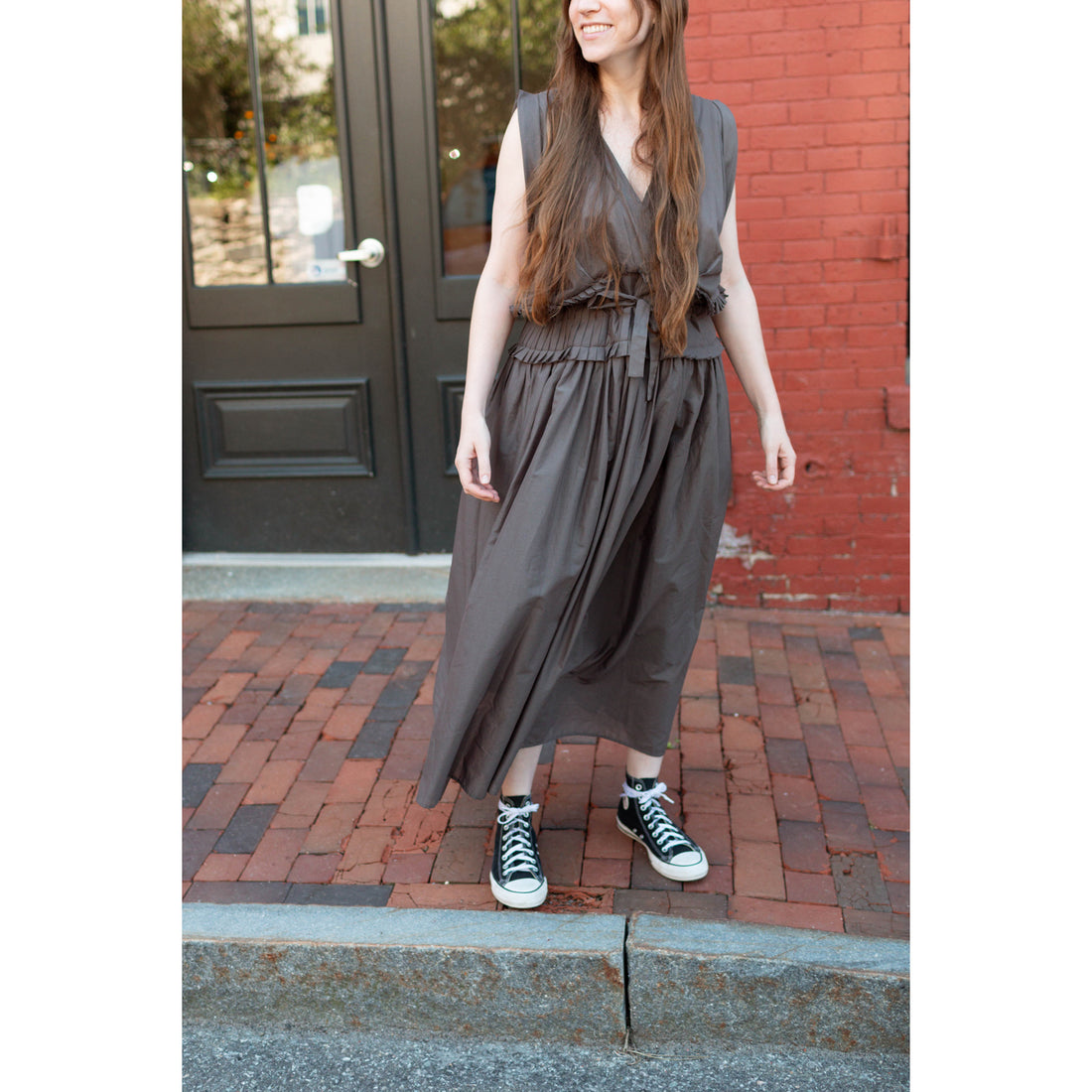 The Camila Dress is a sleeveless midi dress crafted from soft, semi-sheer, and ultra-lightweight cotton lawn.