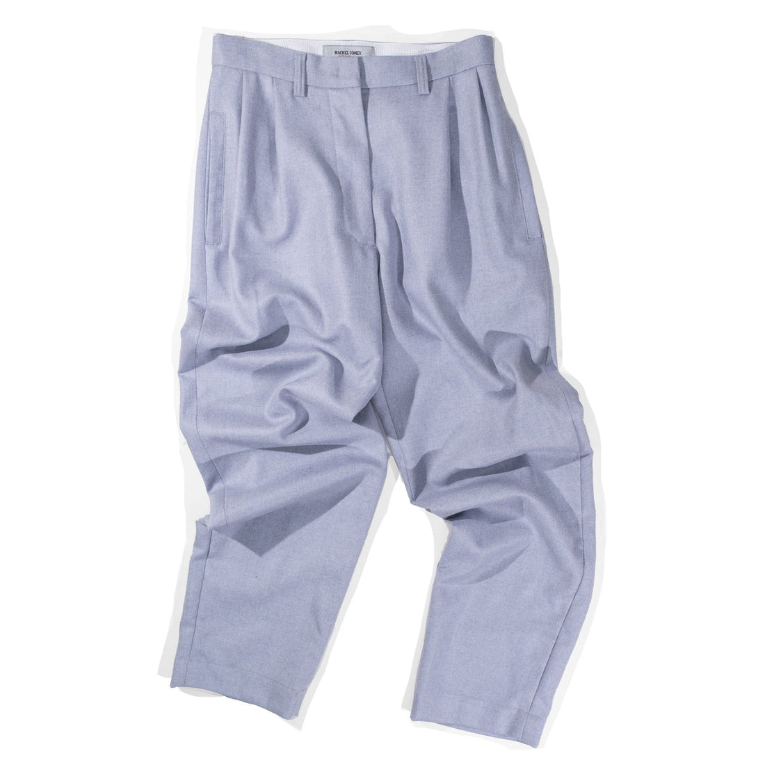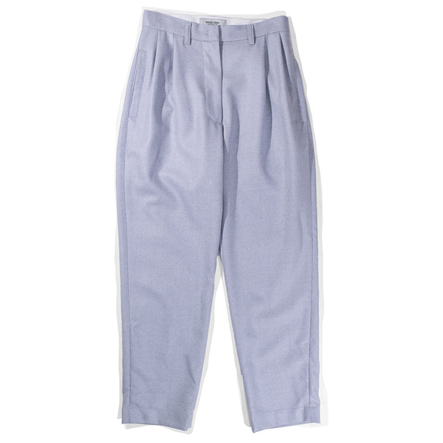 The Cara Pant is a pleated tapered trouser cut from a soft wool flannel.