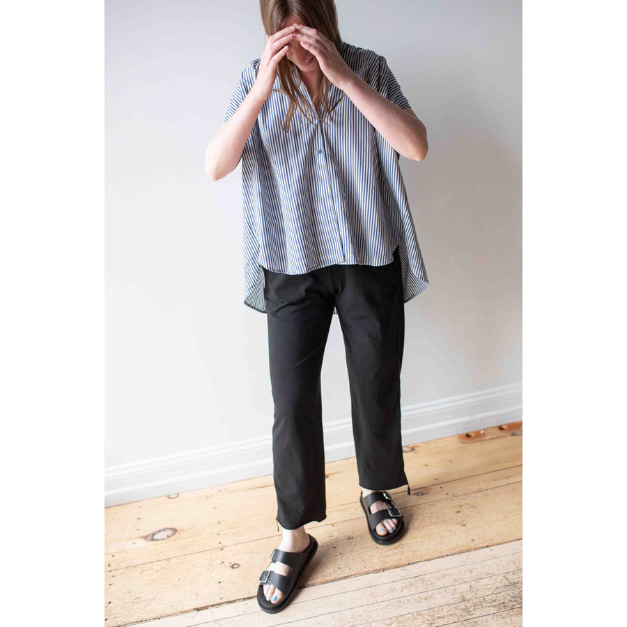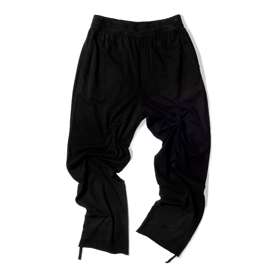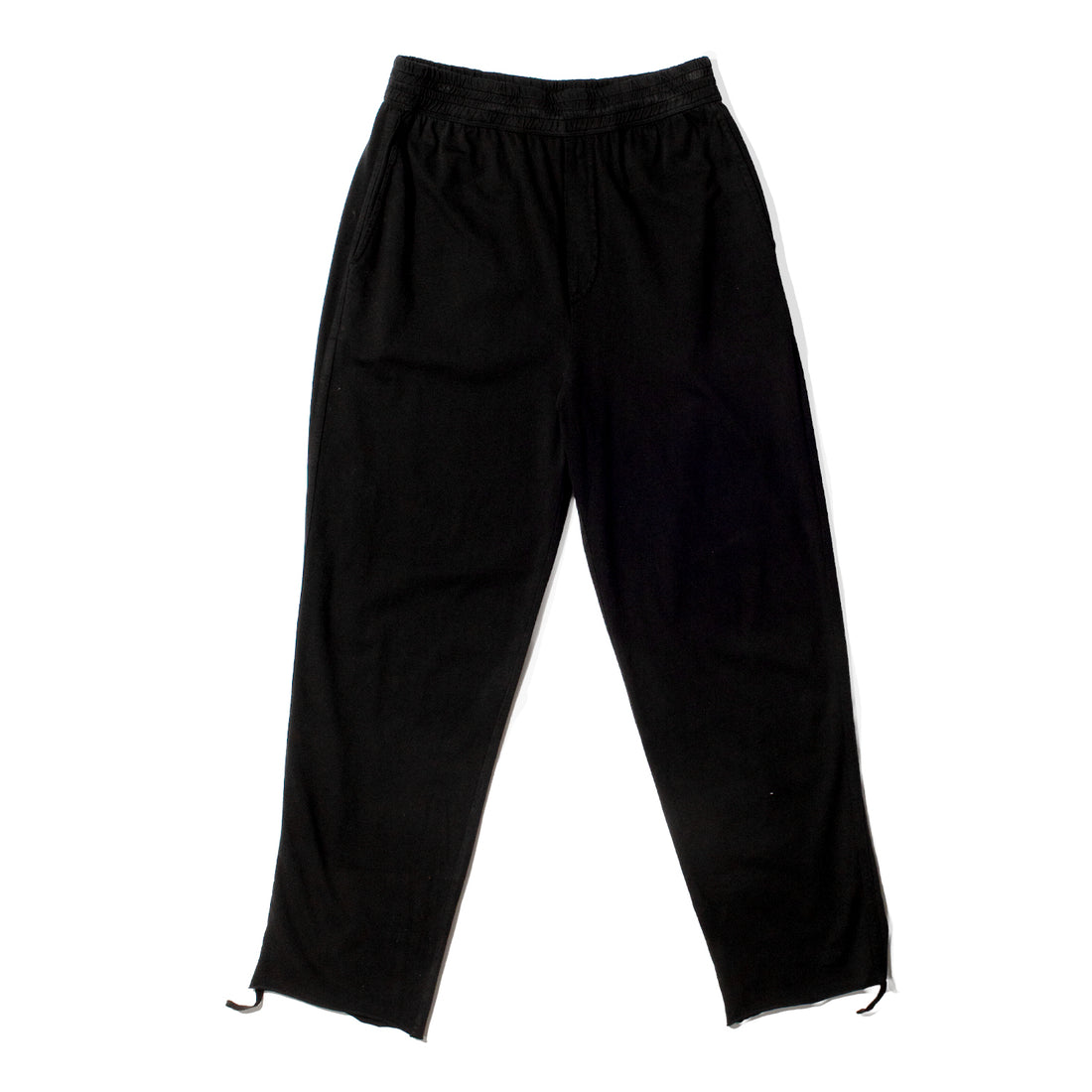 The Wayne Pant is pull-on style with a relaxed elastic waistband and grosgrain ribbon detail along side seam, crafted in garment-dyed cotton jersey.