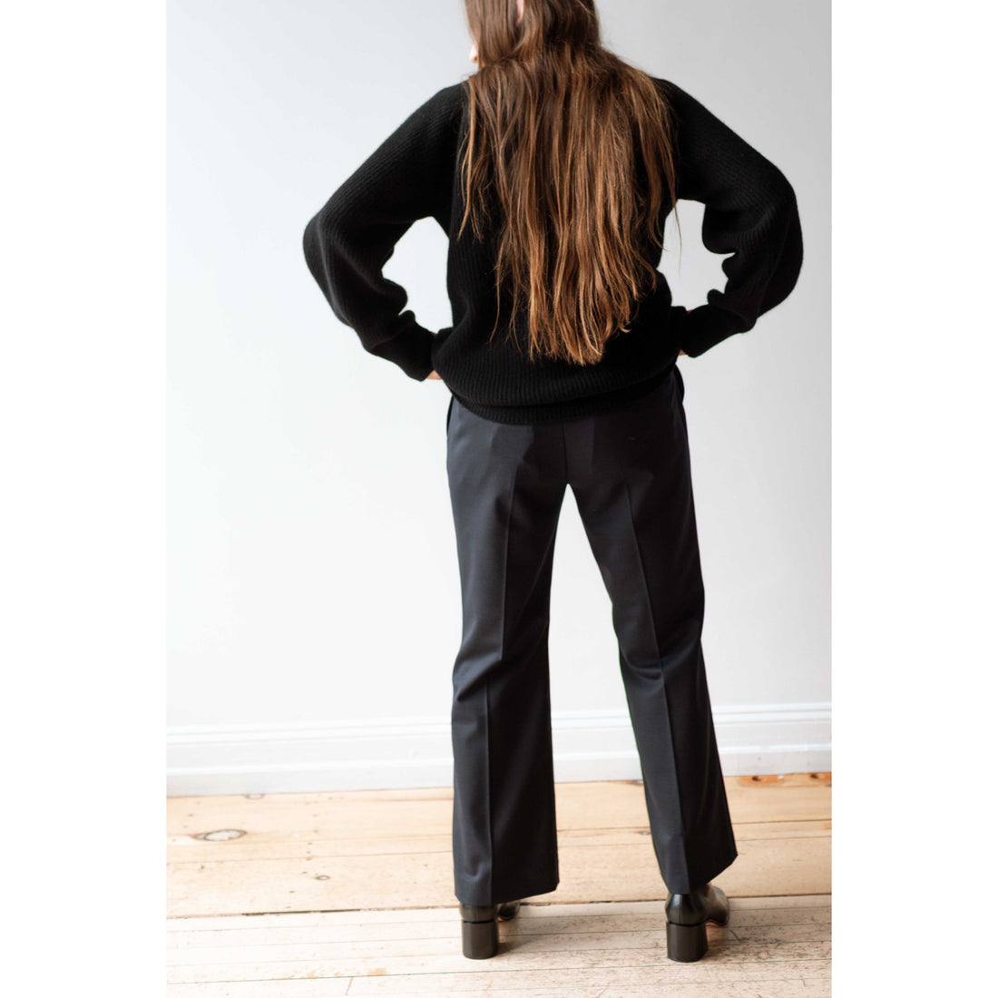 The Watts Tailored Pants are stretch wool trousers with a cropped kick-flare leg.
