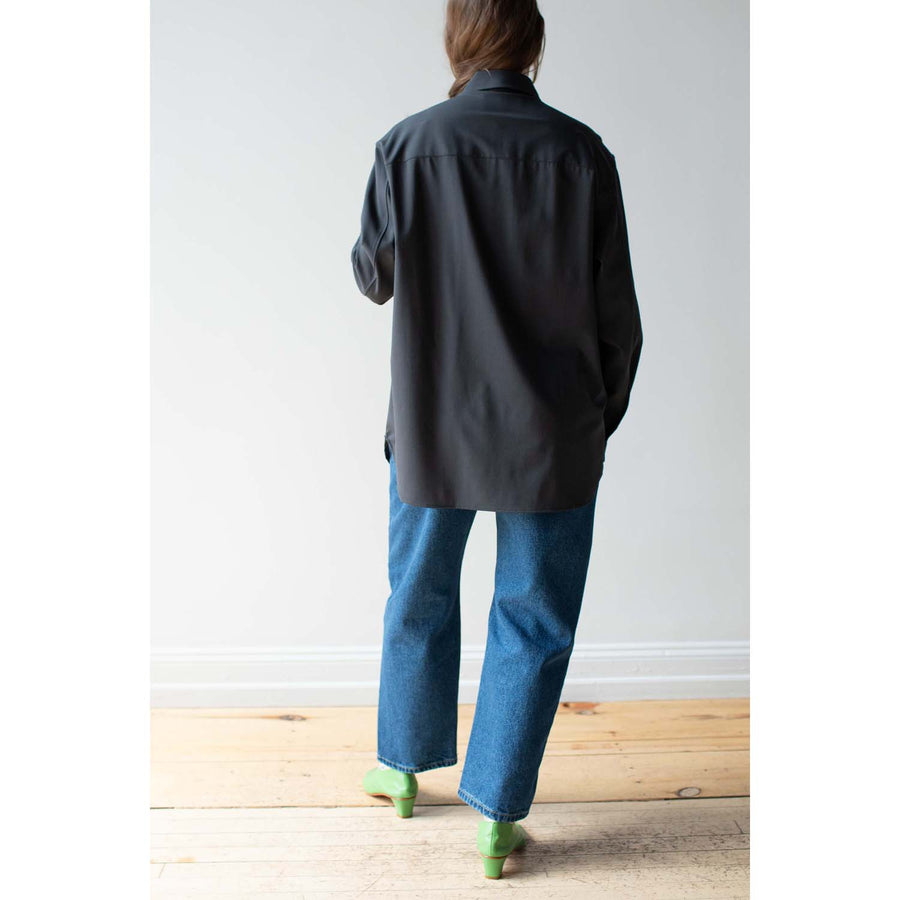The Santos Overshirt is an oversized button down in stretch tropical wool with a refined, squared-off shape.